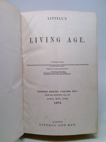 | Book Title | Littell's Living Age, Fourth Series, Vol. XXI (CIX), April,... |