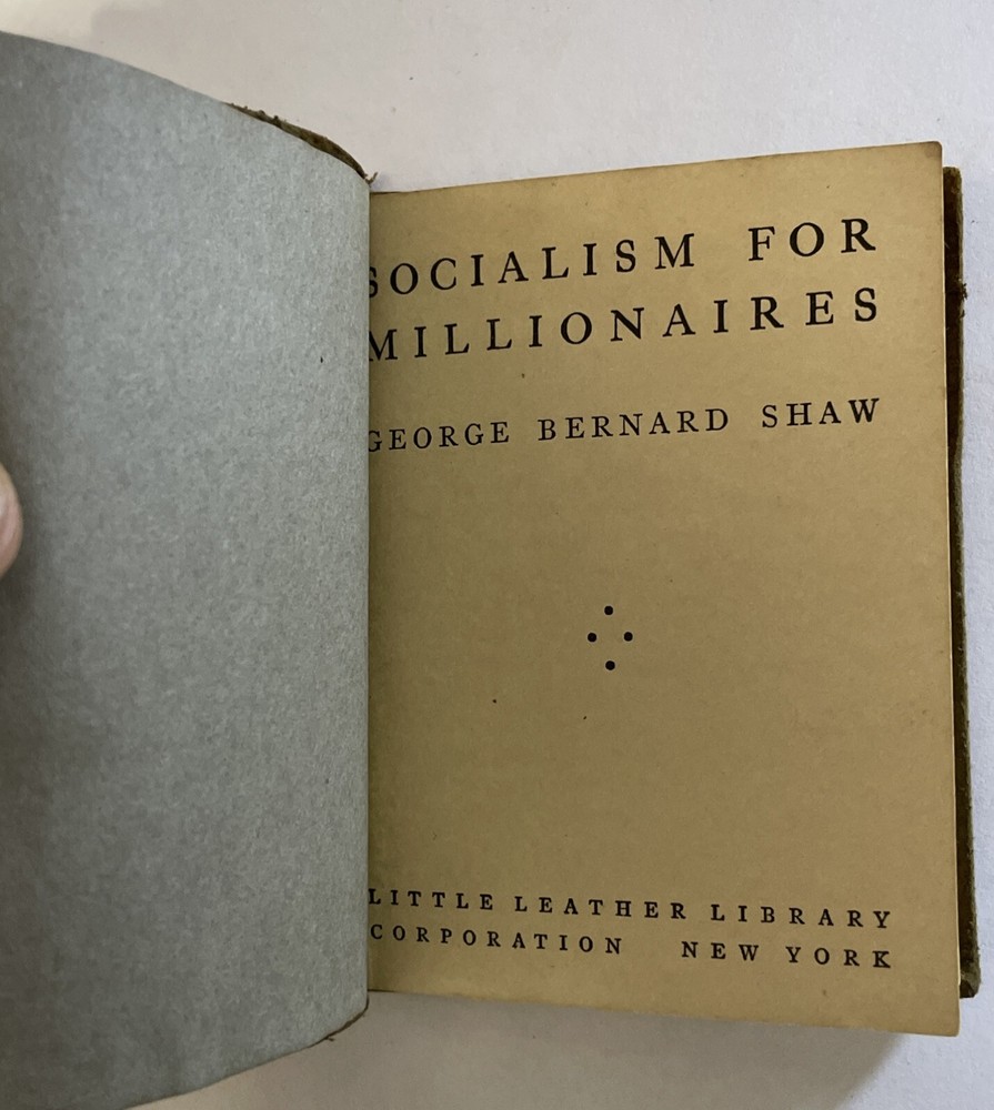 - Little Leather Library SOCIALISM FOR MILLIONAIRES by GEORGE BERNARD SHAW Published 1916-1917 with Real Leather covers. Very rare book. See photos for condition. Size: 3" x 4" . The book in the photo is the book you will receive.