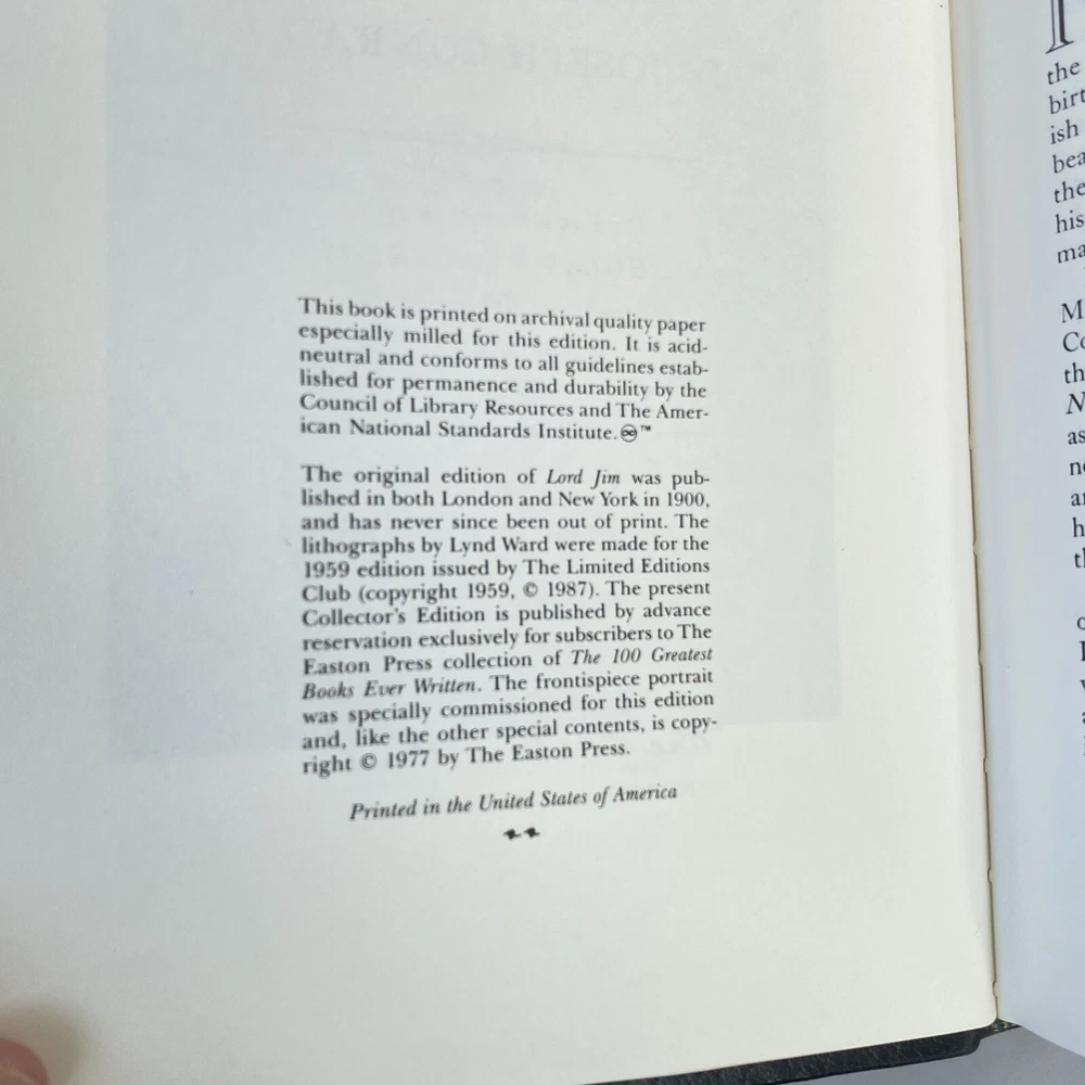 Lord Jim By Joseph Conrad The Easton Press Collectors Edition 1977 Please check out my pictures as they are also part of my description. You will receive only the items in the pictures. I have more items like this in my store. Please feel free to reach out with any questions or to request additional photos. Thank you!
