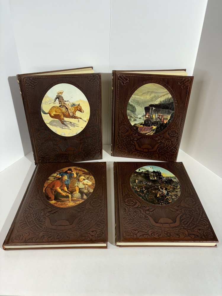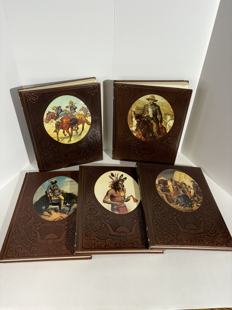 Item: Lot of 9 leather bound books, actual as shown. - The Pioneers - The Trailblazers - The Indians - The Gunfighters - The Soldiers - The Cowboys - The Railroaders - The Forty-Niners - The Texans Condition: Good condition, light wear as shown. Some shelf wear. No markings in any of the books. *** See Photos*** Shipping Details: Shipping will be calculated per weight and via USPS media mail- in a box for protection. International shipping is extra. IF YOU WOULD LIKE TO USE A SHIPPING METHOD OTHER THAN MEDIA MAIL, CONTACT ME BEFORE MAKING A BID. Put it in a box!: A note on shipping in a box. I have received too many books for my personal collection that arrive in a padded (or unpadded) envelope and are subject to some kind of damage in transit. Unless otherwise noted, I ship in a box to protect your purchase. The slight extra cost on shipping is worth it for both of us. Media mail: Media mail shipping is provided for books or other qualified media in order to lower your overall cost. I typically ship within a day or two of days of payment; however, total transit time may vary greatly with media mail. I will update the listing when I ship so you will know your item is on its way. Most of the time media mail is reasonably fast, sometimes amazingly so. That said, at times it can mysteriously take 10-12 days once I mail. There is no rhyme or reason- at least I can't decipher the algorithm. If this happens, please understand it is out of my control. Buy it Now or Best Offer: Please, if you buy it now or get an accepted best offer- go ahead and complete the transaction so we can close out the auction and get your item on its way to you. Thanks! Got a problem?: I try to make listings accurate and your purchase fast and reliable. That said, if I have made a mistake or there is an issue, just contact me. I will make it right. International bidders: shipping outside of the U.S. is handled by the eBay Global Shipping program. eBay adds on the extra cost for international shipping and I have no control over that cost. You should be able to see a shipping estimate/total on the listing page, for your location. Contact me with any questions. Thanks!