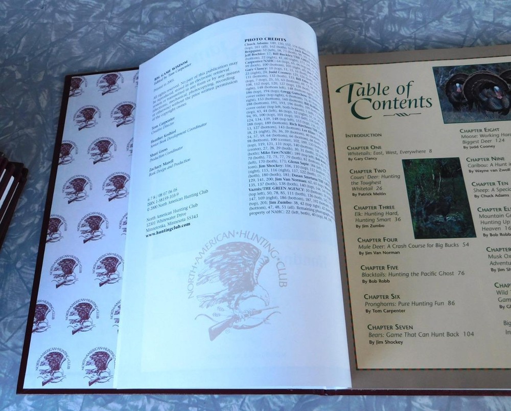 Nicely-kept, single-owner lot of ten (10) hardcover books by North American Hunting Club. Burgundy covers with gilt lettering, 9x11". Condition pristine, near-new. No marks within, no dogeared pages, no odors. Covers sharp and gilt lettering unworn. Here are the titles: ~ Big Game Wisdom ~ Elk Essentials ~ From the Field - Member Tips & Insights ~ Hunting Predators - Proven Tactics That Work ~ Hunting Rewards: Members' Game Recipes ~ Hunting Upland Birds ~ Making Shots - A Rifle Hunter's Guide ~ Mule Deer - Western Challenge ~ The Hunter's Book of the Elk ~ Whitetail Wisdom If you feel our price is out of line, please make an offer Nicely-kept, single-owner lot of ten (10) hardcover books by North American Hunting Club. Burgundy covers with gilt lettering, 9x11". Condition pristine, near-new. No marks within, no dogeared pages, no odors. Covers sharp and gilt lettering unworn. Here are the titles: Big Game Wisdom Elk Essentials From the Field - Member Tips & Insights Hunting Predators - Proven Tactics That Work Hunting Rewards: Members' Game Recipes Hunting Upland Birds Making Shots - A Rifle Hunter's Guide Mule Deer - Western Challenge The Hunter's Book of the Elk Whitetail Wisdom If you feel our price is out of line, please make an offer TERMS: Payment should be received 10 days after I notify you of your auction win. Free Priority Rate (2-4 days) shipping within the United States. International bidders: please use the shipping calculator to determine your shipping rate. Paypal (including Credit Card payments via Paypal) are accepted. If this is an issue please contact me - I'm willing to work with you. Get images that make Supersized seem small. THE simple solution for eBay sellers. Track Page Views With Auctiva's Counter