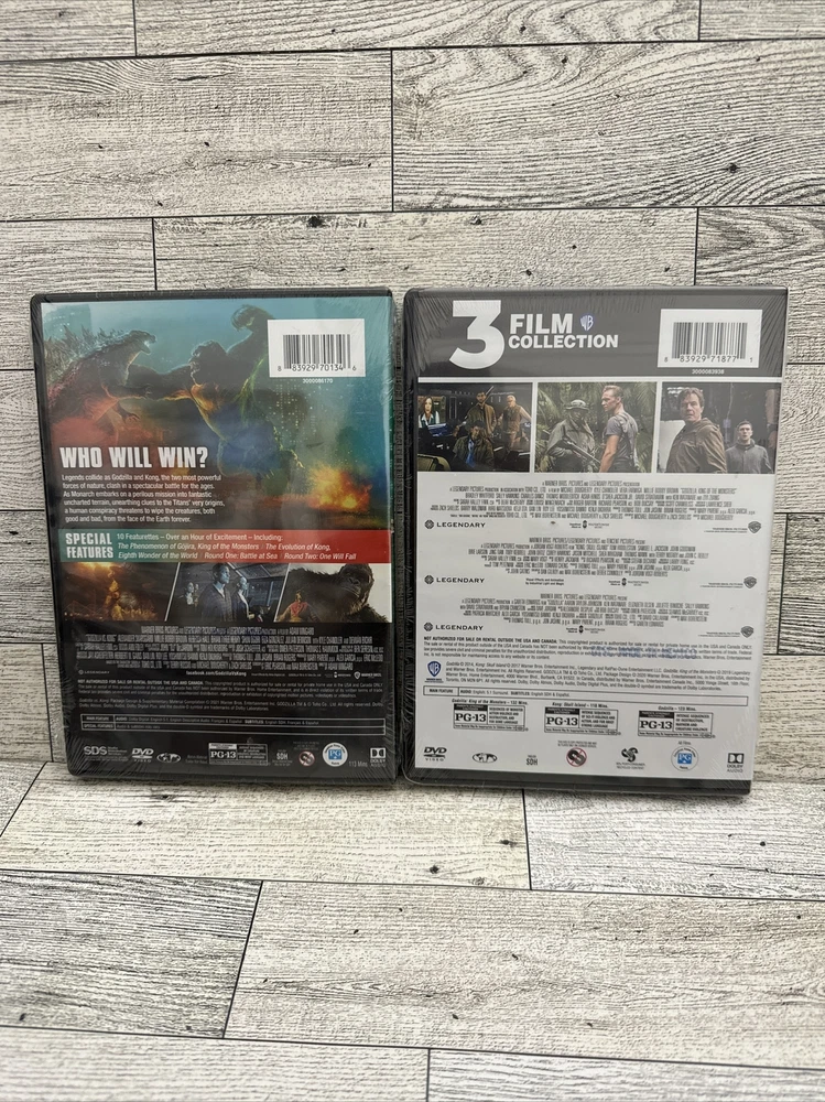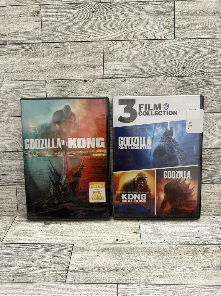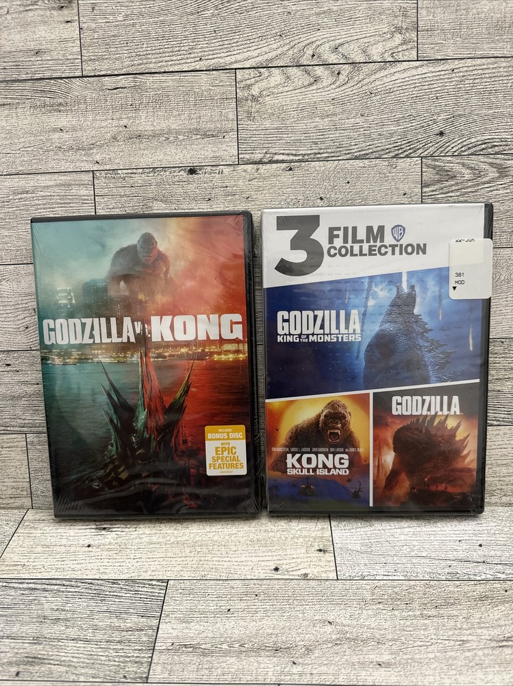 This product is a lot of two DVDs, including the "Godzilla 3 Film Collection" and the newly released "Godzilla Vs. Kong" movie. The DVDs are in tall/DVD case format and have a PG-13 rating. They include English, French, and Spanish subtitles and belong to the science fiction and horror sub-genres. The DVDs are produced by Warner Home Video and come in a special edition. They feature additional scenes and have a total run time of 113 minutes. The DVDs are region code 1 and have English language audio.