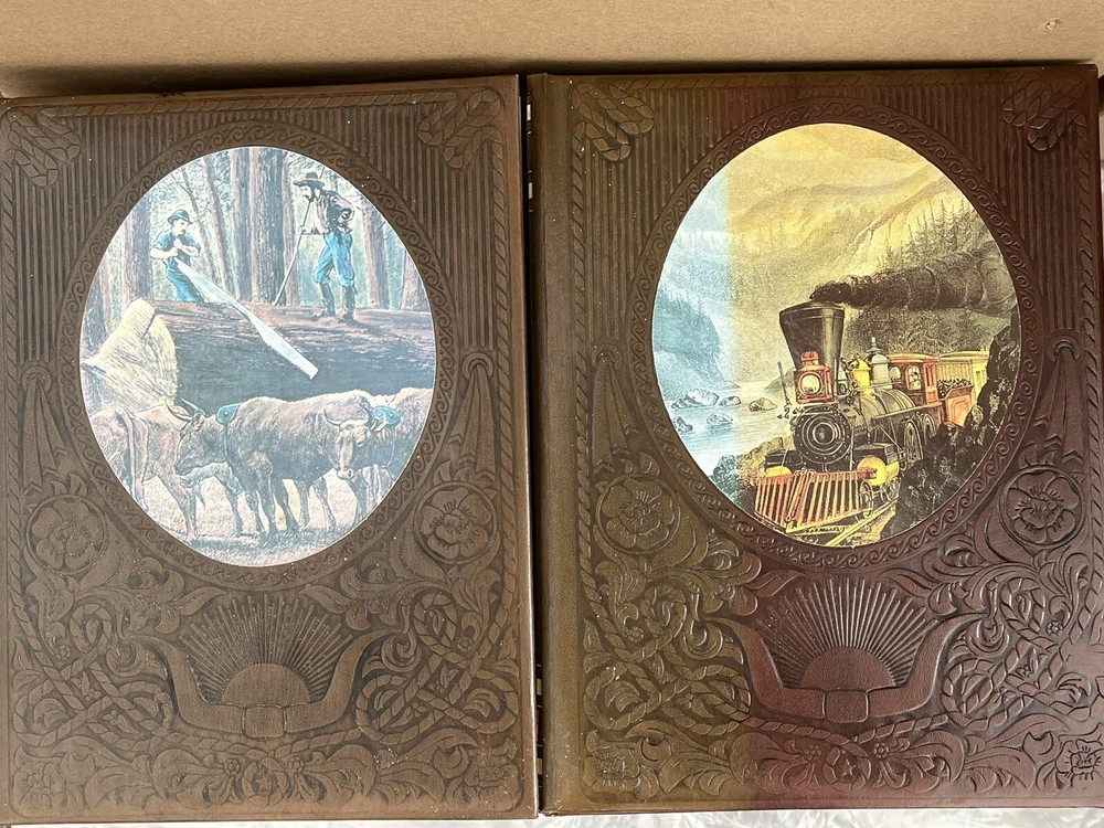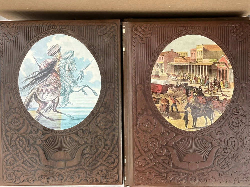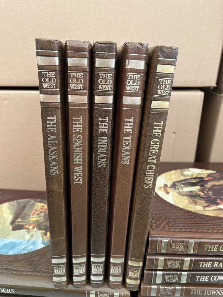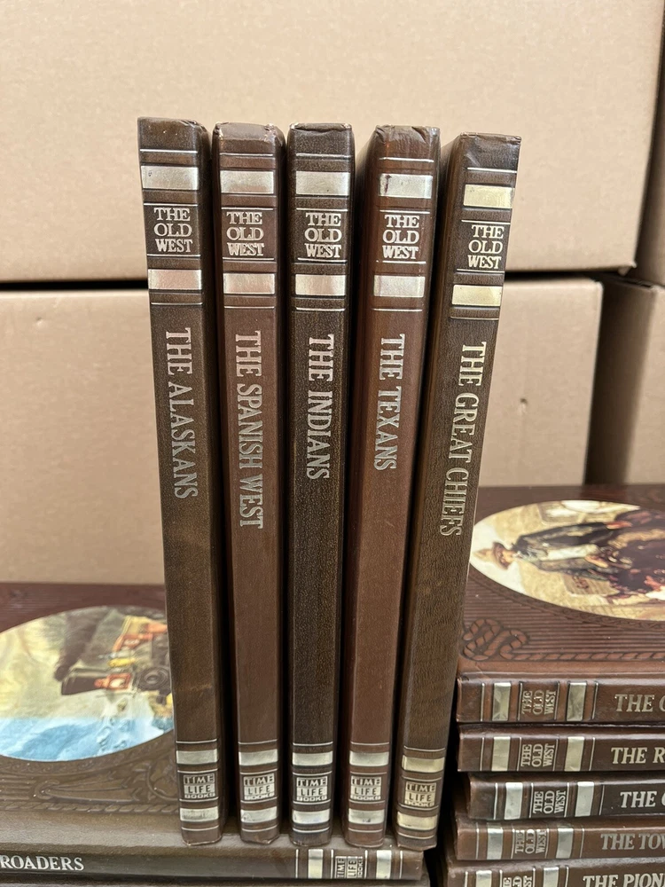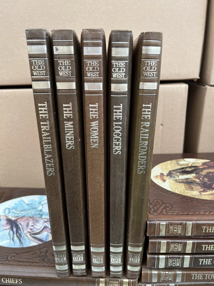 Selling vintage lots of 23 books plus poster. Books included in the listing are shown in photos. The Cowboys The Indians The Trailblazers The Soldiers The Railroaders The Forty-Niners The Pioneers The Gunfighters ( with poster) The Expressmen The Townsmen The Great Chiefs The Rivermen The Texans The Loggers The Chroniclers The Spanish West The Miners The Canadians The Alaskans The Ranchers The Mexican War The Women The Gamblers The books are in very good to good condition. It also includes an original poster that came with the Gunfighter book. Some books have discoloration on the cover due to sunlight exposure during storage and one book has a small scuff. ( as seen in pictures).