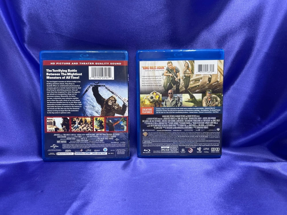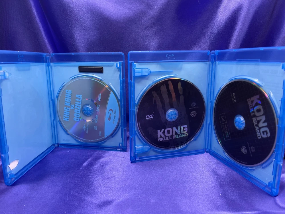 Lot of 4 Godzilla & King Kong Skull Island Warner Bros Blu-Ray Disc with Cases Description Lot of 4 Godzilla & King Kong Skull Island Warner Bros Blu-Ray Disc with Cases . Product Detail • Movie Title : Godzilla King of The Monster, King Kong vs Godzilla & King Kong Skull Ice Land • Format : Blu-ray • Studio : Warner Bros • Type : Movie Please message me if you have any questions.