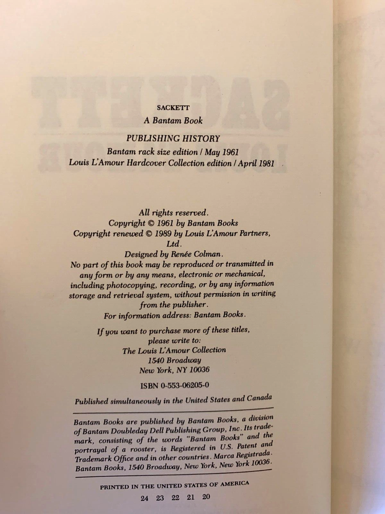 This vintage Bantam leatherette hardcover book is part of the Louis L'Amour Collection and features the title "Sackett". The book is a Western novel written in English and is intended for young adults and adults alike. It is a perfect addition to any book lover's collection and is published by Bantam Books.