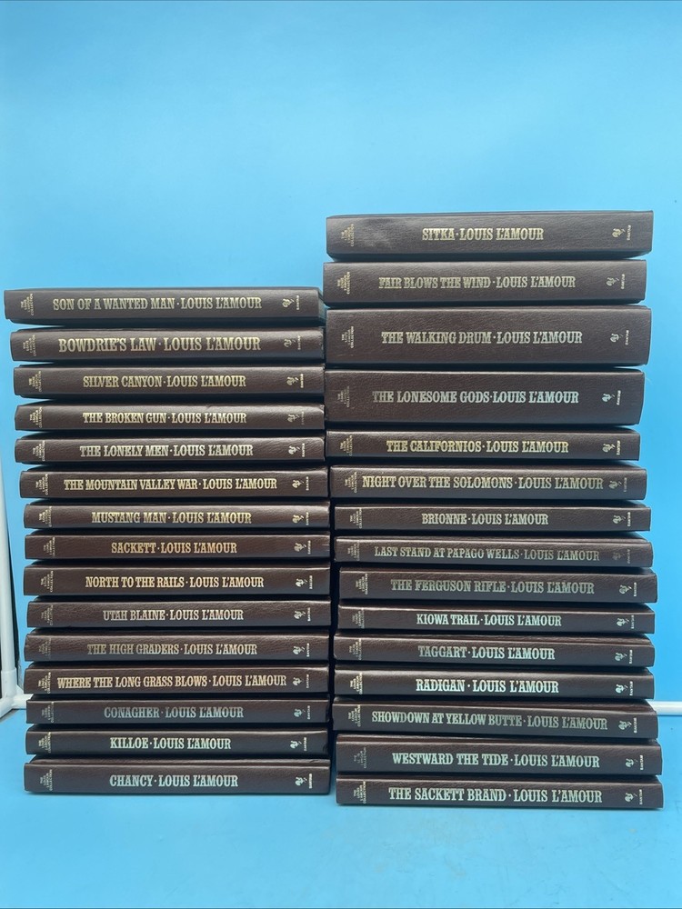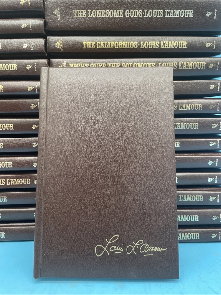 Dive into the enthralling world of Louis L'Amour with this sophisticated leatherette book set. Featuring timeless Western tales, these editions are perfect for cultivating a sense of adventure and nostalgia. Each story immerses you into vibrant characters and riveting landscapes, offering a literary journey that resonates with readers of all generations. • Includes titles such as "Silver Canyon" and "The Lonesome Gods" • Published by Bantam in high-quality leatherette • Luxurious gold foil lettering on the spine • Compact and durable design for easy storage on a book shelf • Ideal for collectors of Western literature Slight shelf wear on edges, crisp pages, no tears or markings. This is a lot of 30 books as shown in the photos.