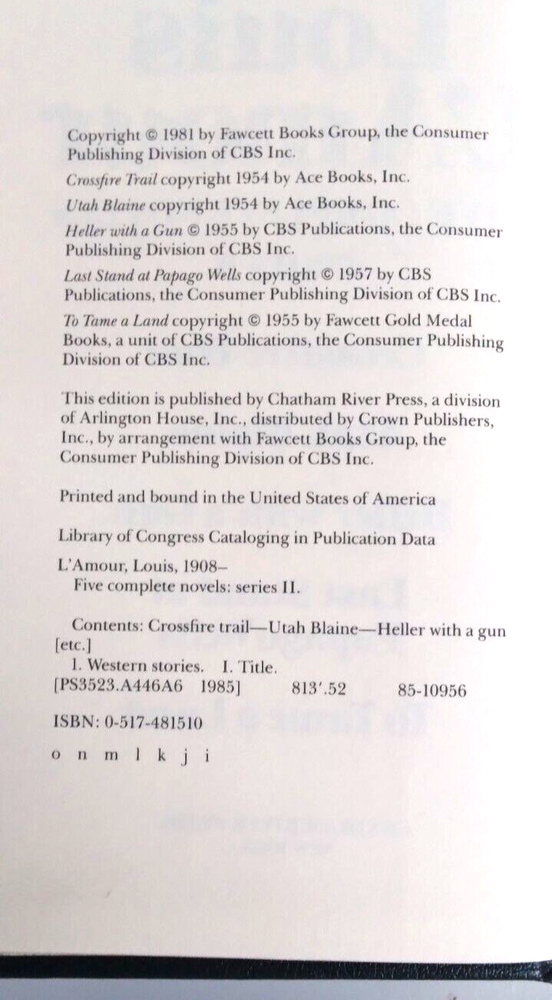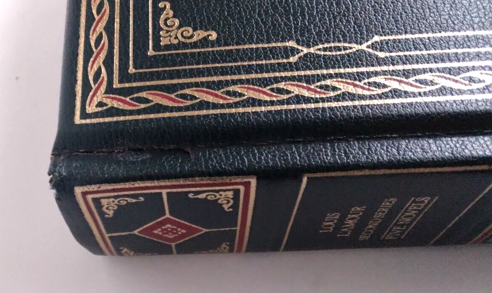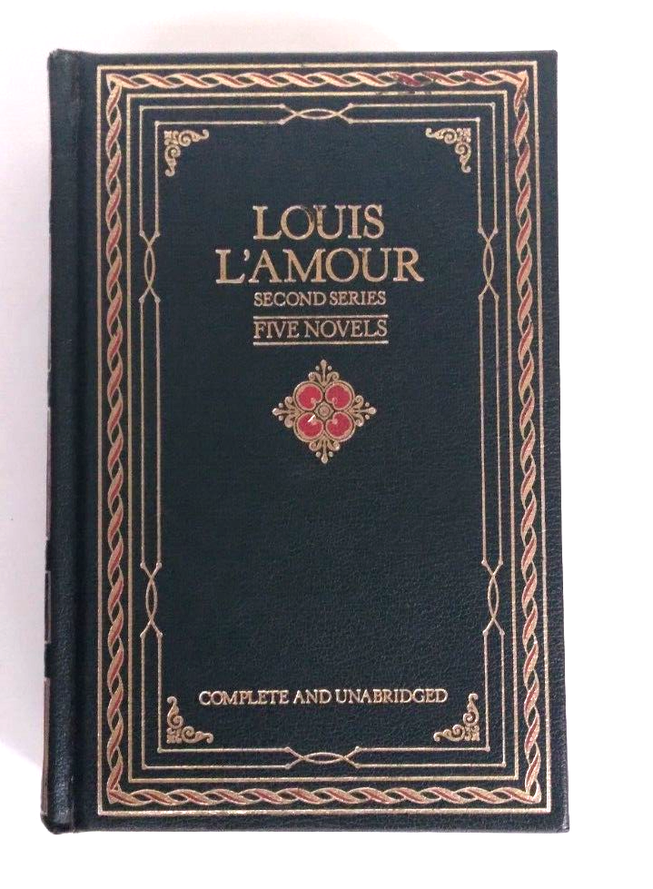 Louis L'Amour, Second Series, Five Novels, Complete and Unabridged ISBN 0517481510 Genuine Bonded Leather Copyright 1981 Gold Page Edge Acceptable Condition - Split to Cover, Top Edge (see pic) Clean No Writing or Markings Tight Binding Shrink Wrapped for Protection