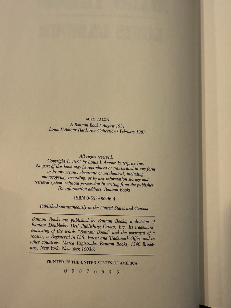 Book, spine and binding in VERY GOOD condition. MINIMAL TO NO wear on binding and cover of books (see pictures) This book contains NO WRITING on the inside pages Pages are in clean reading condition. GREAT copy for reading or collecting. In stock and ready to ship promptly. The book pictured will be the book you will receive Book comes from a smoke free environment. ***Please see pictures for a more thorough and detailed description of item specifics, wear or damage.*** Please check out my other listing for lots more Louis L'amour books!! We ship USPS standard media mail to ensure timely, accurate delivery direct to you. Shop With Confidence! We have a 100% customer satisfaction rate. Please check out our feedback to see what others are saying about us! Contact Us! If you have any questions, or want additional pictures of an item, please send us a message, we normally respond within the day.