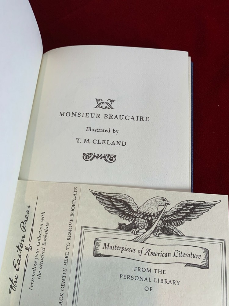 Easton Press, MONSIEUR BEAUCAIRE by Booth Tarkington * Accented in 22kt gold * Printed on archival paper with gilded edges * Ribbon markers * Smyth sewing * Concealed muslin joints * Bound In full leather with hubbed spines. This book is in excellent condition. Please review photos. Monsieur Beaucaire is a short novel by Pulitzer Prize-winning author Booth Tarkington that was first published in 1900. SHIPPING / HANDLING: Book(s) will be handled/packed very safely, and shipped via USPS media mail with delivery confirmation. All items will be shipped next business day after receiving payment. I can combine shipping! - Please let me know if you have any questions!
