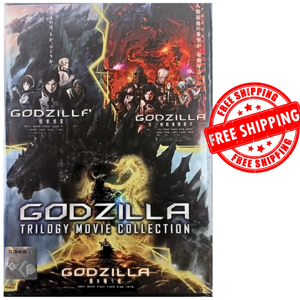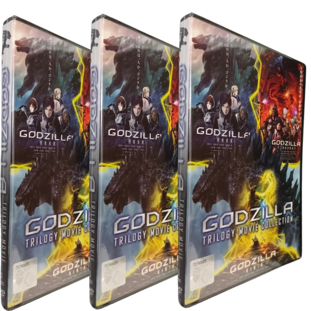 Title : DVD Godzilla Trilogy Movie Collection Weight : 171g SKU : SKCT-03122402 Anime DVD: GODZILLA *** Trilogy Movie Collection *** Language: Japanese/English Subtitle: English/Chinese Media Type: NTSC; Fullscreen 4:3, All Region DVD Edition Year: 2020 No. of Disc: 3 DVD 1. Godzilla: Planet of The Monsters 2. Godzilla: City on the Edge of Battle 3. Godzilla: The Planet Eater