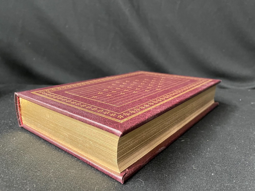 NOT an ex-library copy. The pages are gilded on all three sides, as seen in photos. This leather bound book is like new and appears never to have been read of even opened. Pages are clean and binding is tight. Please refer to photos for condition.