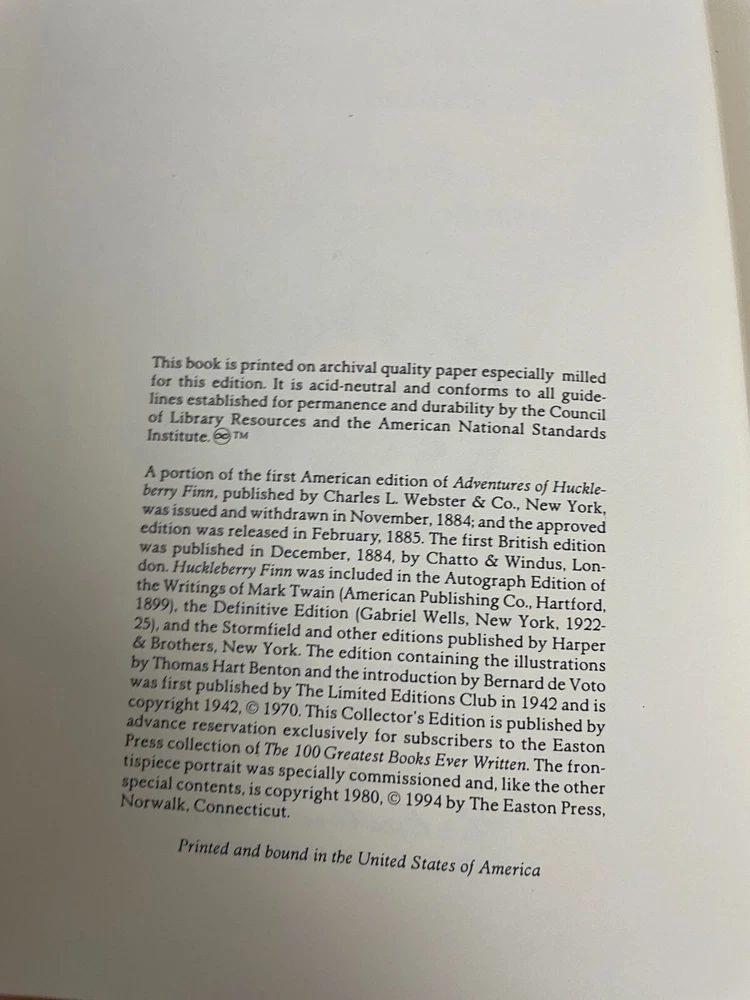 Vintage Mark Twain Adventures Of Huckleberry Finn Easton Press Leather Bound Item in excellent preowned condition. Minor wear and stains as shown in photos.
