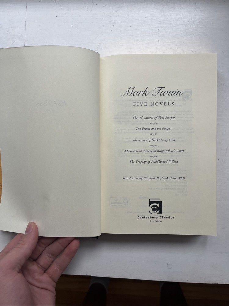 Dive into the world of literature with "Mark Twain: Five Novels," a collection that brings together the quintessential works of one of America's greatest writers. This leather-bound edition, published in 2011 by Printers Row Publishing Group, is a testament to the timeless appeal of Twain's narrative genius. Spanning 718 pages, the set includes a variety of stories that exemplify the richness of American fiction, with themes ranging from action and adventure to classic literary critiques.Each novel in this collection showcases Twain's mastery of language and wit, presenting readers with both a visual and literary feast. The books measure 9.2 by 6.2 inches, with a comfortable thickness of 1.6 inches, making them both substantial and portable. Whether for display or reading, these volumes are sure to be a treasured addition to any bibliophile's collection.