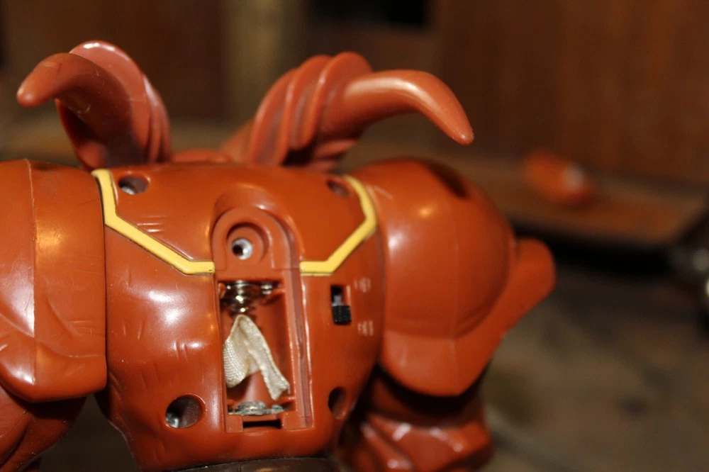 Please see photos for conditions- sold as is with no returns or warranties. Scuffs from play, broken left arm joint. UNTESTED, as is, needs batteries, consider non working. Ships with tracking. We combine shipping Merrydeath Antiques thanks you for visiting our store listings. We are a small family business based in East Tennessee. We pride ourselves on having a unique, quirky, and sometimes creepy store. We travel constantly from the Florida Keys to the mountains of Eastern Kentucky searching for the odd and unusual. We try to maintain a mix of items for every price range. We work with a team of pickers that are constantly on the prowl for antiques and collectibles. We want you to enjoy your purchase as much as we enjoyed finding it. We make mistakes sometimes, so if you have an issue please contact us and we will try to make it right. Arnie, MJ, Bethany, Aaron, Clay, Victoria, Cooper, and Tucker
