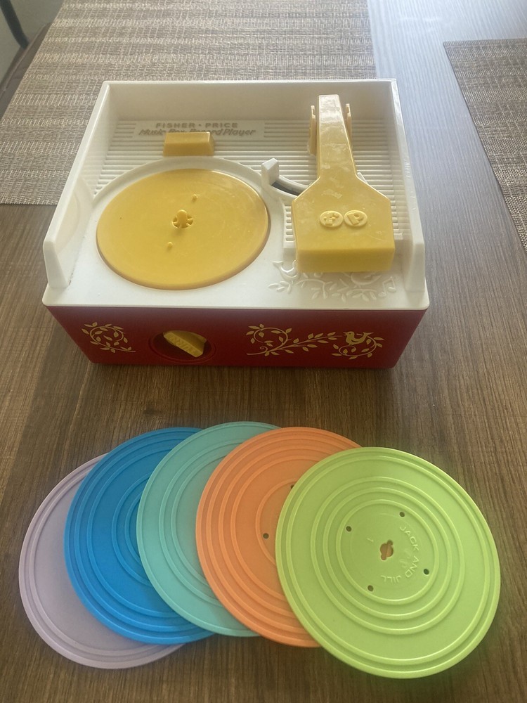 This vintage Mattel Fisher Price Music Box Record Player from 2010 is a delightful addition to any toy collection. With its adorable design, it is sure to bring nostalgia and joy to both children and adults alike. This item has been tested and is in perfect working condition, providing a charming and fun musical experience for all. Featuring 5 records and a variety of classic tunes, this Music Box is a wonderful gift for any lover of toys and music. The brand, Mattel, is well-known for producing high-quality products, and this Music Box is no exception. With its durable build and timeless design, it is a toy that will be cherished for years to come.