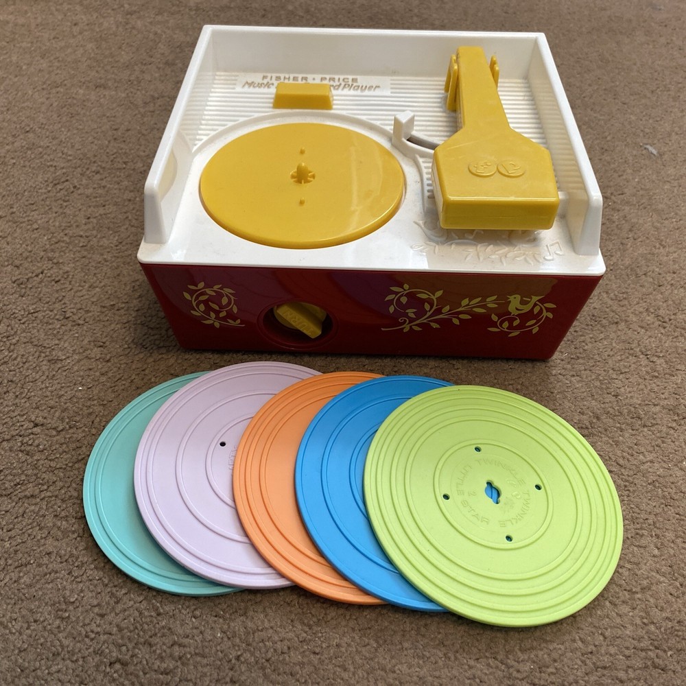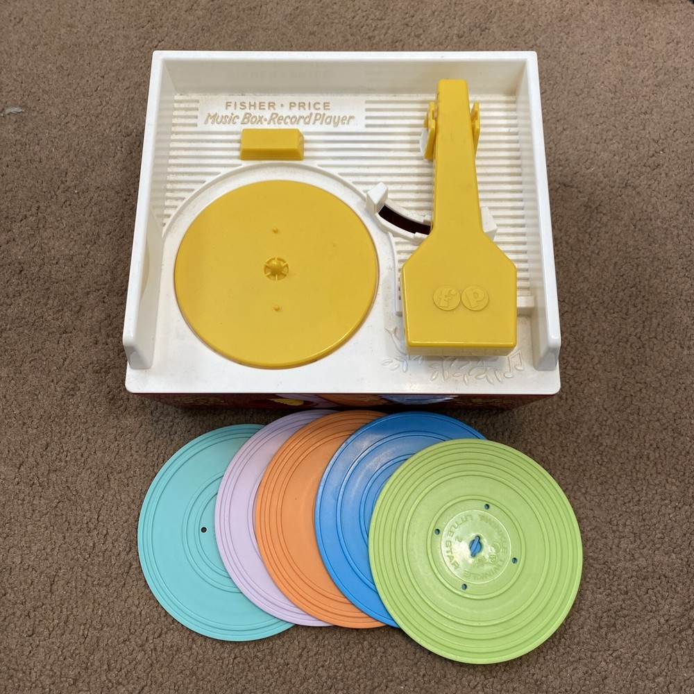 This charming Mattel Fisher Price Music Box Record Player from 2014 is sure to delight any child or nostalgic music lover. With five included records, this classic toy provides hours of entertainment and encourages imaginative play. Tested and in working condition, this music box is ready to bring joy to its new owner. The vintage-inspired design and high-quality construction make this a timeless addition to any collection. Ideal for children and collectors alike, this Mattel Fisher Price Music Box Record Player is a must-have for anyone who appreciates the magic of music.