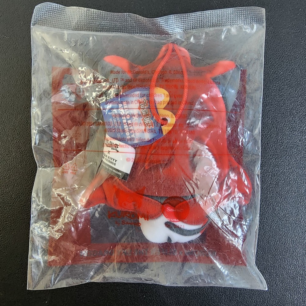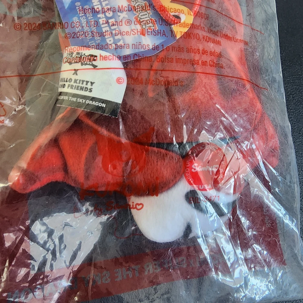 **Condition**: The toy is brand new and still in its original plastic packaging, ensuring it’s in pristine, unused condition. **Packaging**: The original Happy Meal box is **not included**, but the toy itself is fully intact and untouched. **Design**: Kuromi, the beloved Sanrio character, is styled in an adorable Slifer the Sky Dragon costume, blending two iconic franchises into one charming collectible. Due to its age and rarity, this toy is a fantastic find for collectors. Don’t miss the chance to own this special piece of pop culture history!