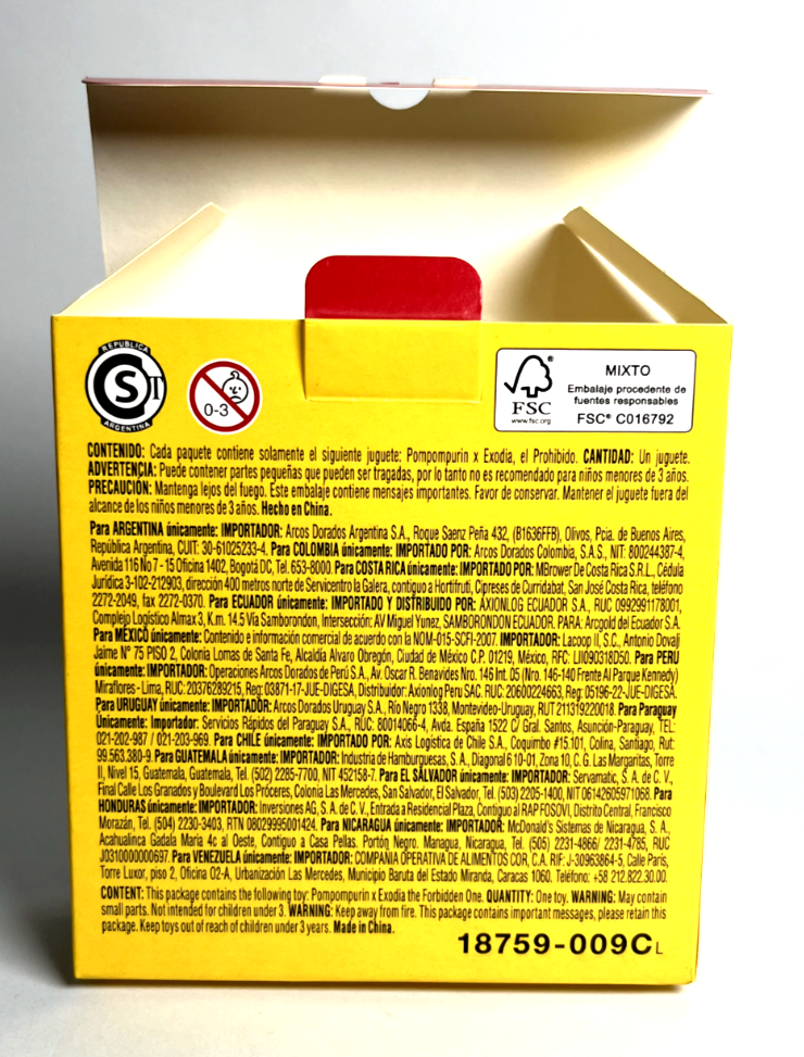 Plantilla Alegre McDonalds Yu-Gi-Oh! x Hello Kitty Pompompurin as Exodia the Forbidden One INCLUDE: BOX ( Pompompurin as Exodia the Forbidden) COUNTRY: PERU MANUFACTURED BY MC DONALDS & SANRIO YEAR: 2024 LICENCED: SANRIO & MCDONALD'S TYPE: TEDDY ** MORE PASSION, MORE COLLECTIBLES ** SHIPPING WORLD WIDE WITH TRACKING CODE ** DO NOT FORGET CHECK MY OTHERS ITEMS FOR SALE AND COMBINED SHIPPING. ** ** WE DO WHOLESALE WITH THE BEST PRICES!! DO NOT HESITATE TO CONTACT ME. ** TOYS002-03