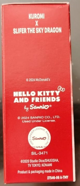 This unique set of figures brings together the iconic worlds of Hello Kitty and Yu-Gi-Oh!, featuring fan-favorite characters Kuromi, Slifer the Sky Dragon, and of course, Hello Kitty herself. Each figure is expertly crafted and perfect for collectors and fans alike. The figures are sold as a set and are a must-have for any anime and manga enthusiast or animation merchandise collector. Don't miss out on this one-of-a-kind opportunity to own a piece of pop culture history!