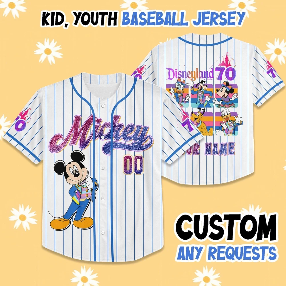 Mickey Mouse 70th Disneyland Baseball Jersey for Family Vacation Gift Men Women Kids NEW