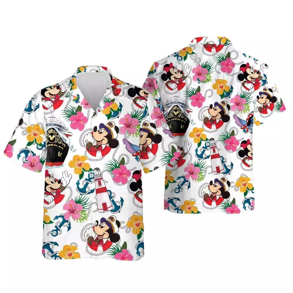 Mickey and Friends Lighthouse Hibiscus Hawaiian Shirt for Summer