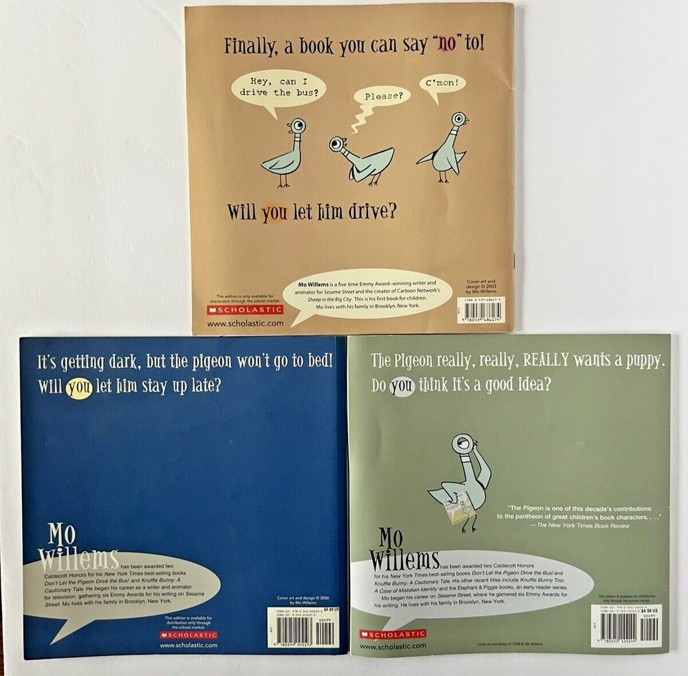 The Mo Willems Pigeon Series Set includes a collection of three kids picture books in paperback format. Authored and illustrated by Mo Willems, these books cater to an intended audience of ages 4-8 and belong to the genre of Children & Young Adults. The series features the character Pigeon and is published by Scholastic in the United States, with the books falling under the narrative type of fiction. Additionally, the set may include features like large print, being abridged, and illustrated to engage young readers in the captivating stories.