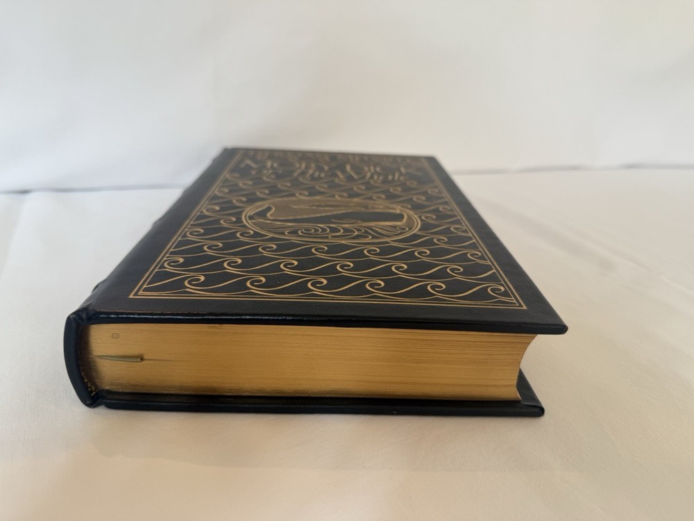 This stunning leather-bound collector's edition of Moby Dick is a must-have for any serious bibliophile. The craftsmanship by Easton Press is impeccable, with rich detailing that makes it a timeless treasure. Holding this beautifully printed book feels like owning a piece of literary history, perfect for display or cherished reading. A true gem for fans of Melville's masterpiece!