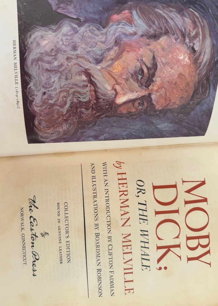 The product is a collector's edition of Moby Dick by Herman Melville, published by Easton Press in 1977. This leather-bound edition was printed in Norwalk, Connecticut, and is part of the 100 Greatest Series. It is a special attribute for literature and fiction enthusiasts, offering a unique and timeless piece to add to their collection. This edition is a valuable addition to any book lover's library, showcasing the author's work in a beautifully crafted format.