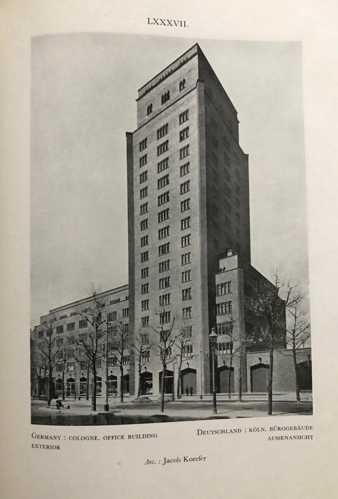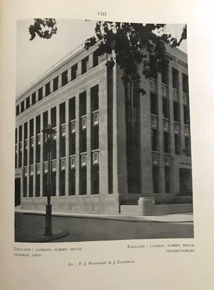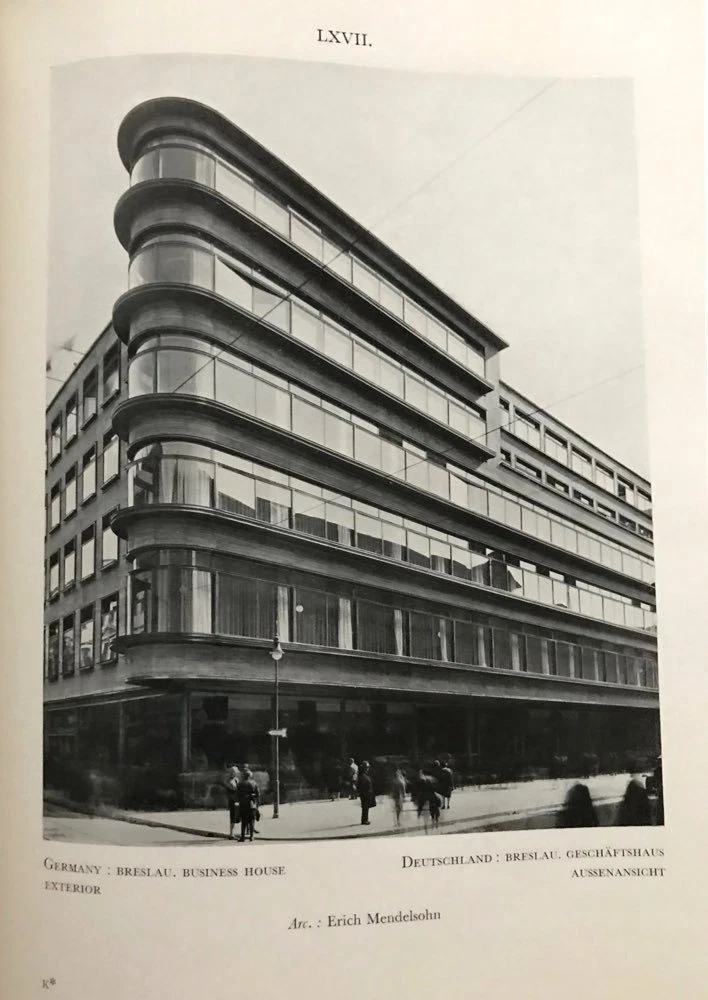 (nd),circa 1930. 6pp introduction + 144 monochrome plates. Full French navy blue goat with claret goat inlay, gold and silver tooling, silver lettering to front panel, raised spine bands ruled in gilt, two claret spine labels lettered in silver, pale grey endsheets. Execellent photographic survey of contemporary European architecture in a beautiful Art Deco inspired binding. All examples are commercial, industrial and public structures; no residential work is illustrated.