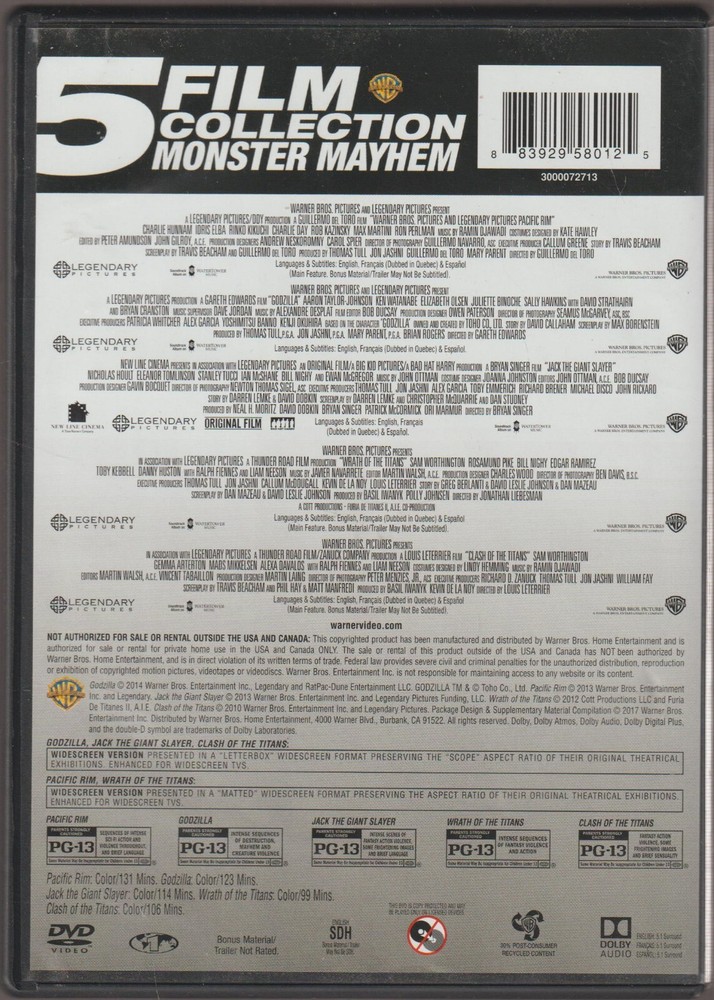 Monster Mayhem 5 Film Collection Godzilla Clash of the Titans DVD Used (D - 5)...