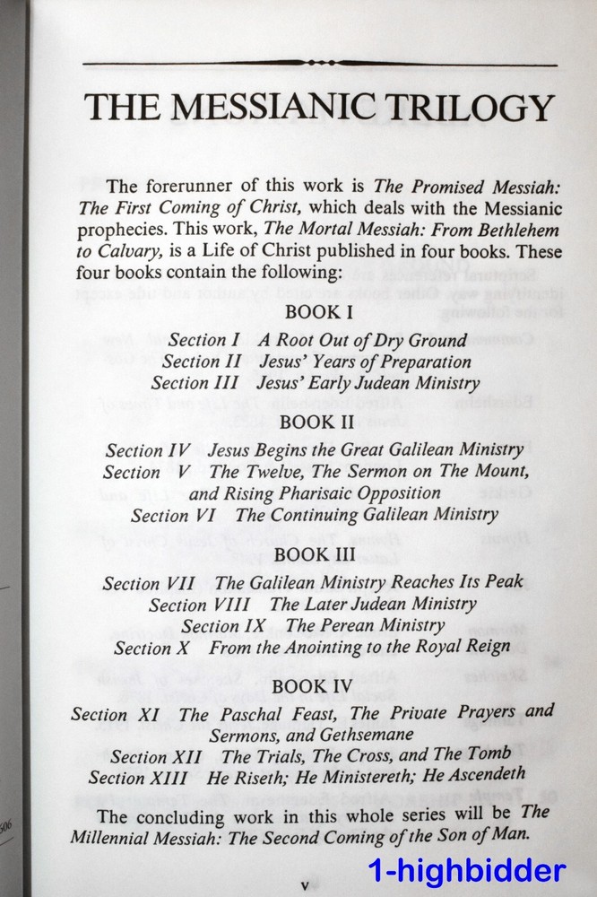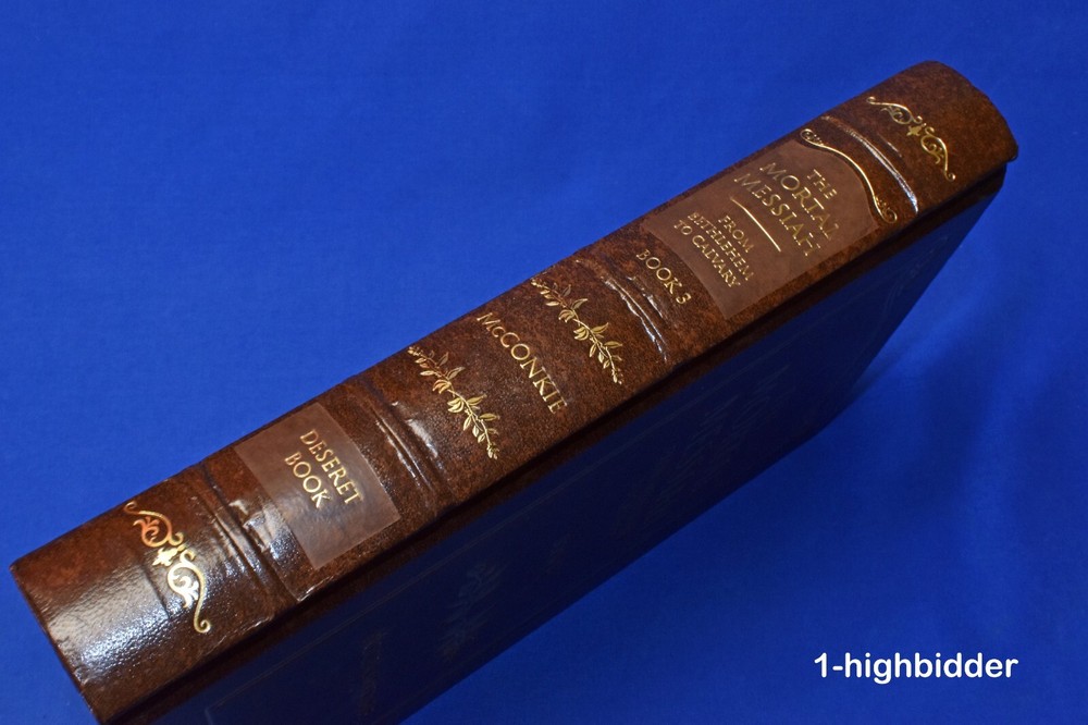 Mortal Messiah, Volume 3 Special Leather Hardcover Edition Bruce R. McConkie LDS Mormon _________________________________ The Mortal Messiah, Volume 3 (Bound in Brown Leatherette) by Bruce R. McConkie Published by Deseret Book (2010) BROWN LEATHERETTE HARDCOVER BOOK in LIKE NEW CONDITION! This is Volume 3 from the set of 6 special edition Mortal Messiah Books by Bruce R McConkie. It's my hope that this volume (and the other two I've listed, v. 1 & v.4) will find their way into a home where someone is missing these volumes from their set. Condition: LIKE NEW First Edition Volume 3, Mortal Messiah book bound in Brown Leatherette! The binding is tight and all pages are bright white with NO WRITING, UNDERLINING, HIGH-LIGHTING, RIPS, TEARS, BENDS OR FOLDS. The covers look perfect, as can be seen in my photos. This beautiful book is adorned with perfect gold gilded page edges and a sewn-in silk marker. There are some very light marks on the gold gilded page edges - this is the only flaw. You will be happy with this one! Always handled carefully and packaged securely! Buy with confidence from a seller who takes the time to show you the details and not use just stock photos. Please check out all my pictures and email with any questions! Thanks for looking! About the Book Series: The Messiah Series, penned by Elder Bruce R. McConkie is 6 part series concerning our Lord and Savior Jesus Christ. Using the scriptures and various other sources Elder McConkie quite poetically and artistically writes about Jesus Christ starting from the premortal existence, his mission, continuing from his mortal ministry, the accomplishments of our Savior, and ending with what the scriptures tell us concerning the last days. The Promised Messiah: This volume presents a careful analysis of prophecies concerning the First Coming of the Lord. The discourse deepens our understanding that Christ is the Savior, that he did indeed come to make atonement for the sins of men and thus opened up the way for them to return to his presence. The Mortal Messiah, Volume 1: Beginning with the prophecies that were coming to pass as the Advent of the Messiah approached, and expanding on Jesus Christ's childhood, His baptism, and early ministry, this landmark Spirit-filled volume is worth reading more than once. The Mortal Messiah, Volume 2: Delving into the Savior’s Galilean ministry and reviewing the Sermon on the Mount and much of the Pharisaic opposition, volume two of The Mortal Messiah will provide readers with valuable insights. The Mortal Messiah, Volume 3: This volume continues with the life of Christ at the peak of his Galilean ministry, with miraculous healings and the feeding of the four thousand, and continues through to the Savior’s sermon on the Mount of Olives which includes the Parable of the Ten Virgins and the Parable of the Talents. The Mortal Messiah, Volume 4: Jesus — the Savior of the world, the Messiah — is preparing himself to die. His mortal ministry among men on earth is nearing an end, and he must prepare his disciples for what is to be — his betrayal and crucifixion. The Millennial Messiah: Prophecies from ancient as well as modern scriptures are recounted, explained, and compared as the author delves into every aspect of the Savior's second advent. No careful reader can complete this book without adding significantly to his knowledge about the Christian world's most-heralded future event. About the Author, Bruce R. McConkie: Bruce Redd McConkie (July 29, 1915--April 19, 1985) was an influential Apostle of the Church. He is remembered by the many doctrinal books he wrote, such as Mormon Doctrine and The Messiah Series, and for writing the chapter headings for the Standard Works. Mormon Doctrine, published in 1958, was a first attempt to compile the doctrines of the Church into a single, comprehensive volume, and it was solely Elder McConkie's work. However, the tone of the book was extremely authoritative, and though some of the doctrines presented were not approved by the First Presidency, the book was popular and looked upon as authoritative by members of the Church. The First Presidency oversaw revisions to the book, at first reluctant to republish it in any form. New editions were released in 1966 (with a more moderate tone) and 1978 (after the Priesthood was given to all worthy male members of the Church). Elder McConkie was born in Ann Arbor, Michigan, to Oscar Walter McConkie and Margarat Vivian Redd. During his childhood, he lived in Monticello, Utah; Salt Lake City; and Ann Arbor, Michigan. He attended the University of Utah. While there, he met Amelia Smith. He served a mission to the Eastern States between 1934 and 1936 and participated in the Palmyra Pageant in 1936. He married Amelia, (1916 - 2005), daughter of Joseph Fielding Smith in 1937, just after they both graduated from the University. McConkie later earned his Juris Doctor degree. McConkie was called into active duty during World War II. He then worked for a time as a newspaper reporter. He was called to the First Council of the Seventy in 1946, and then to the Quorum of the Twelve Apostles in 1972, where he served until his death. He served as Mission President in Southern Australia from 1961 to 1964, while a member of the Seventy. Elder McConkie famously wrote the note "It is my province to teach to the Church what the doctrine is. It is your province to echo what I say or to remain silent." Elder McConkie died just twelve days after the conclusion of a General Conference, in which he delivered a masterful talk and testimony, titled, The Purifying Power of Gethsemane. Speaking of the Savior, he declared with apostolic knowledge, "I am one of his witnesses, and in a coming day I shall feel the nail marks in his hands and in his feet and shall wet his feet with my tears. But I shall not know any better then than I know now that he is God's Almighty Son, that he is our Savior and Redeemer, and that salvation comes in and through 