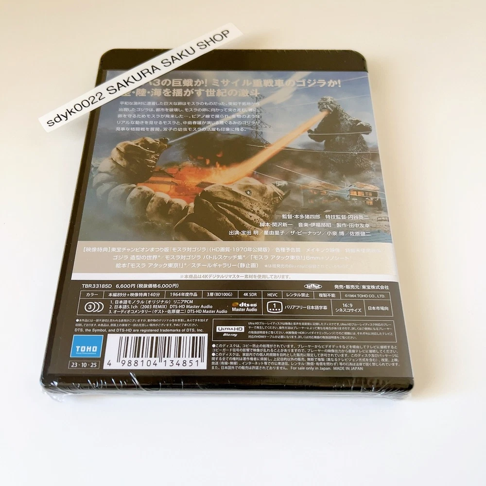 Mothra vs. Godzilla 4K Remastered 4K Ultra HD Blu-ray Region free TOHO Movie SFX Description New Title: Mothra vs. Godzilla 4K Remastered Product Type: 4K Ultra HD Blu-ray TV Standard: NTSC Number of Discs: 1 Director: Ishiro Honda Writer: Shinichi Sekizawa Starring: Akira Takarada, Yuriko Hoshi, Hiroshi Koizumi, Yu Fujiki, Kenji Sahara, Emi Ito Producer: Tomoyuki Tanaka Color: Color Running Time: 89 Minutes Original Release Year: 1964 Aspect Ratio(s): Cinemascope Region: free Subtitles: Japanese Audio Track: Japanese 5.1ch, Japanese Linear PCM Monaural Mach 3 giant moth or The Godzilla of missile heavy tanks! The fierce battle of the century that shakes the land, sea, and sky! Bonus Video - Champion Festival "Mothra vs. Godzilla" (HD quality/'70 release version) - Making of 8mm - Unused special effects footage - Trailers - Still Gallery - The World of Godzilla Modeling* - Mothra vs. Godzilla Battle Sketches Collection* - Mothra Attack Tokyo" 8mm + sonosheet* - Picture book "Mothra Attack Tokyo "* - The above items are included in the previously released Blu-ray. * is from the previously released Blu-ray Audio Commentary (Guest: Kenji Sahara) [STORY] A huge egg washed ashore in a peaceful fishing village belongs to Mothra. Suddenly, Godzilla emerges from the reclaimed land, destroys the city, and then pushes forward toward Mothra's eggs. Finally, Mothra flies in to protect the eggs... *Ultra HD Blu-ray player is necessary to play this Ultra HD Blu-ray disc. Please note that it will not play on regular Blu-ray player. For optimal viewing experience of 4K UltraHD content, 4K/HDR TV is recommended, although it is also compatible with 4K TV and HV TV. [About 4K UltraHD] 4K UHD boasts high resolution of 3840 pixels x 2160 lines (8.3 megapixels, aspect ratio 16:9), which is twice the horizontal and vertical resolution compared to the 1080p HDTV format, with four times as many pixels overall. Payment Please pay within 5 days after the auction closed. We will ship the item within 5 business days after your payment clears. Shipping This item will be shipped from JAPAN. Please check the shipping method in the Shipping Policy for that item. If you have any questions, please contact us anytime. About other areas, please ask us. Returns Returns are accepted ONLY if the item was not the item described. International Buyers - Please Note: * Import duties, taxes, and charges aren't included in the item price or postage cost. These charges are the buyer's responsibility. "Please check with your country's customs office to determine what these additional costs will be prior to bidding or buying. * We do not mark merchandise values below value or mark items as "gifts" - US and International government regulations prohibit such behavior. Thank you for your understanding in advance.