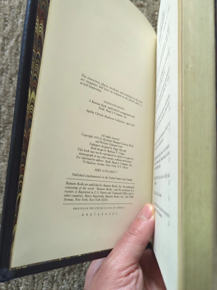 Step into the world of mystery and intrigue with this rare deluxe leather bound first edition of Agatha Christie's "Murder With Mirrors". The binding of this book is crafted from high-quality leather, giving it a touch of elegance and sophistication. The language used in this book is English and it is published by Bantam. This book is perfect for collectors of vintage books. It is a great addition to any collection of literature and fiction, and it is sure to keep you entertained with its thrilling mystery and suspenseful plot. The topic of this book is mystery and thriller, and it is a must-read for anyone who loves to be captivated by a good story.