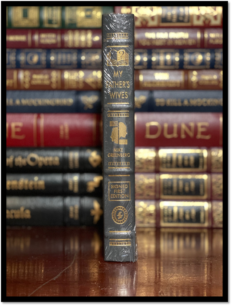 My Father's Wives This is a new in shrink-wrap Easton Press leather-bound hardback of My Father's Wives by Mike Greenberg. The co-host of ESPN’s Mike and Mike follows up his New York Times bestseller All You Could Ask For with this poignant story of one man’s search to understand himself, his marriage, and his father. Jonathan Sweetwater has been blessed with money, a fulfilling career, great kids and Claire, his smart, gorgeous, sophisticated wife. But there is one thing Jonathan never had: a relationship with his father. Percival Sweetwater III has been absent from his son’s life since Jonathan was nine years old. A five-term U.S. senator, now dead, Percy was beloved by presidents, his constituents, and women alike, especially the five women who married him after Jonathan’s mother. Jonathan hasn’t thought about Percy or the hole he left in his life for years. Dedicated to Claire and his family, he’s nothing like his serial monogamist father. But then Jonathan discovers evidence that everything in his marriage may not be as perfect as he thought. Hurt and uncertain what to do, he knows that the only way to move forward is to go back. On this quest for understanding—about himself, about manhood, about marriage—Jonathan decides to track down his father’s five ex-wives. His journey will take him from cosmopolitan cities to the mile-high mountains to a tropical island—and ultimately back to confront the one thing Jonathan has that his father never did: home. SHIPPING I ship via media mail within the U.S. If you would like an expedited option please let me know before buying. I ship globally, but I use the U.S. service which I ship to in Kentucky and it ships out to the Country and uses their services. Also, if you are an international buyer and would like to combine shipping and the add to cart and request total option is not working please contact me about creating you a listing.