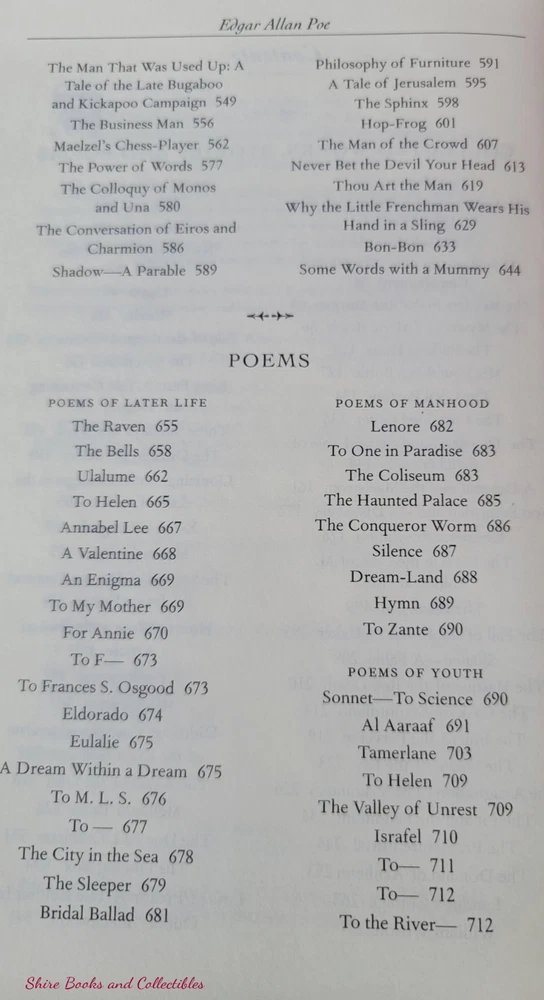 Edgar Allan Poe Collected Works Special Bonded Leather Hardcover Collectible Edition BRAND NEW Never Read!! 100% Positive Feedback Seller - Bid without worries!! Item Description: This book is brand new , never read or used in any way Beautiful gilt lettering on the cover and spine Gold gilt page edges Satin ribbon book marker attached Bonded Leather bound hardback boards Book Dimensions: 9.2 x 6.2 x 1.5 inches Page Count: 724 Return Policy: Returned or exchanged items must be in original condition to qualify for a refund, and must be returned within 30 days from the purchase date. Customers are responsible for all return or exchange shipping charges. Once the returned item is received back to me and I can verify condition, I will process the Refund. Shipping FREE Shipping within the continental USA will be via USPS Media Mail. Priority Mail is available for an extra $10 shipping charge. If you are from an American location that is not part of the continental USA , you will be required to pay for Priority Mail. I have set these locations as Exclusions, but I will be happy to remove the exclusions upon request and agreement to pay for the $10 for Priority Shipping. International Shipping will be via eBay Global Shipping Program. I use Media Mail to send to the Global Shipping center in Kentucky, however, if you wish for it to arrive at the center more quickly, you can add $10 to have it shipped there Priority. All of my books are shipped in sturdy, safe and secure boxes. Track Page Views With Auctiva's FREE Counter