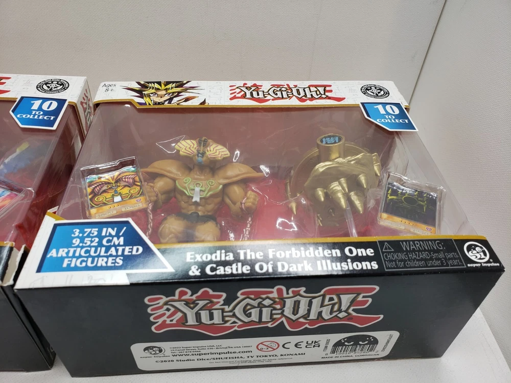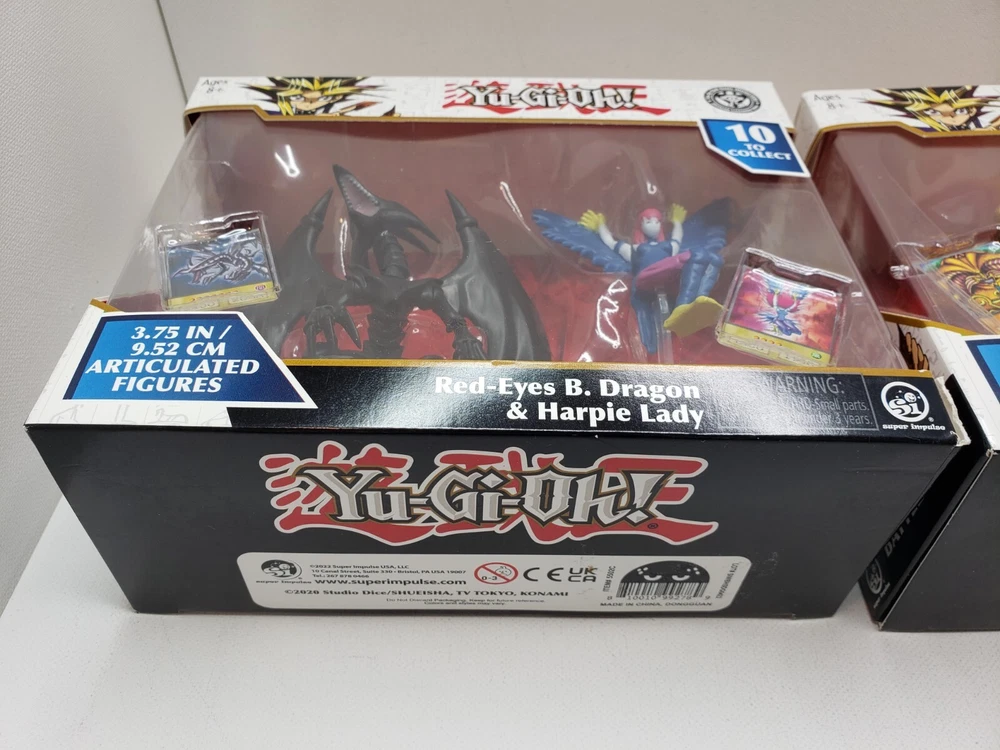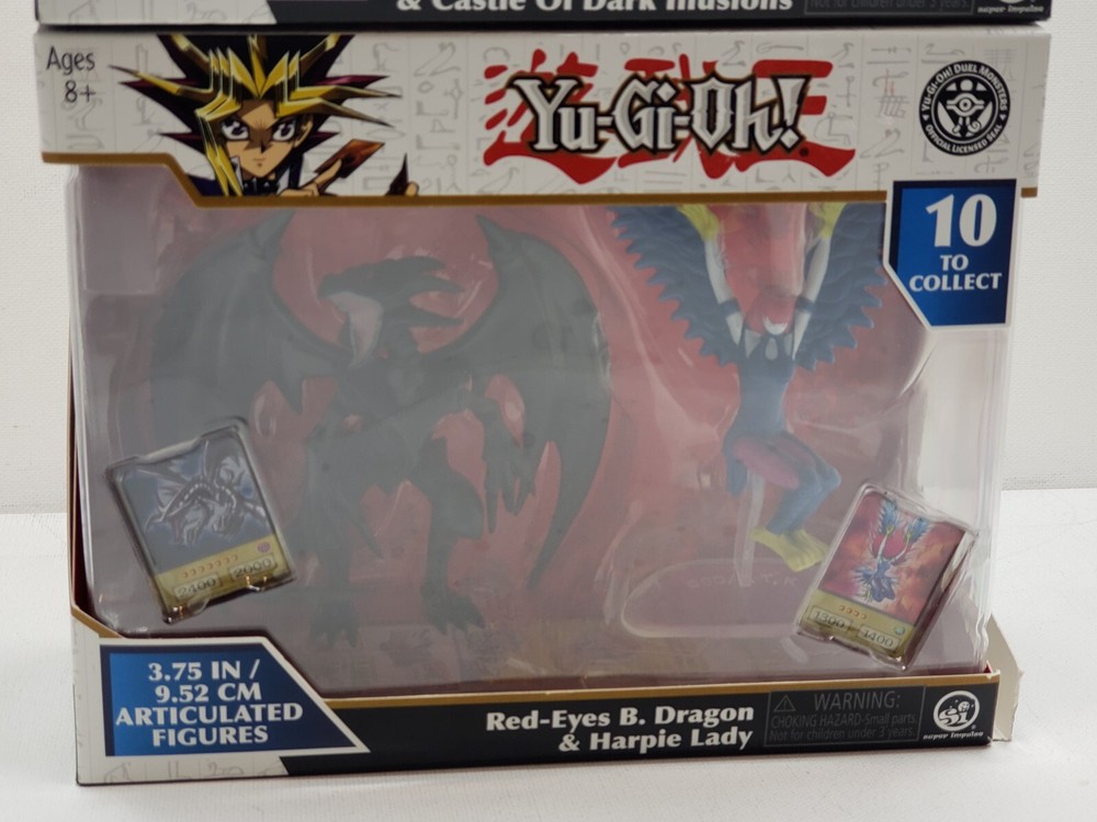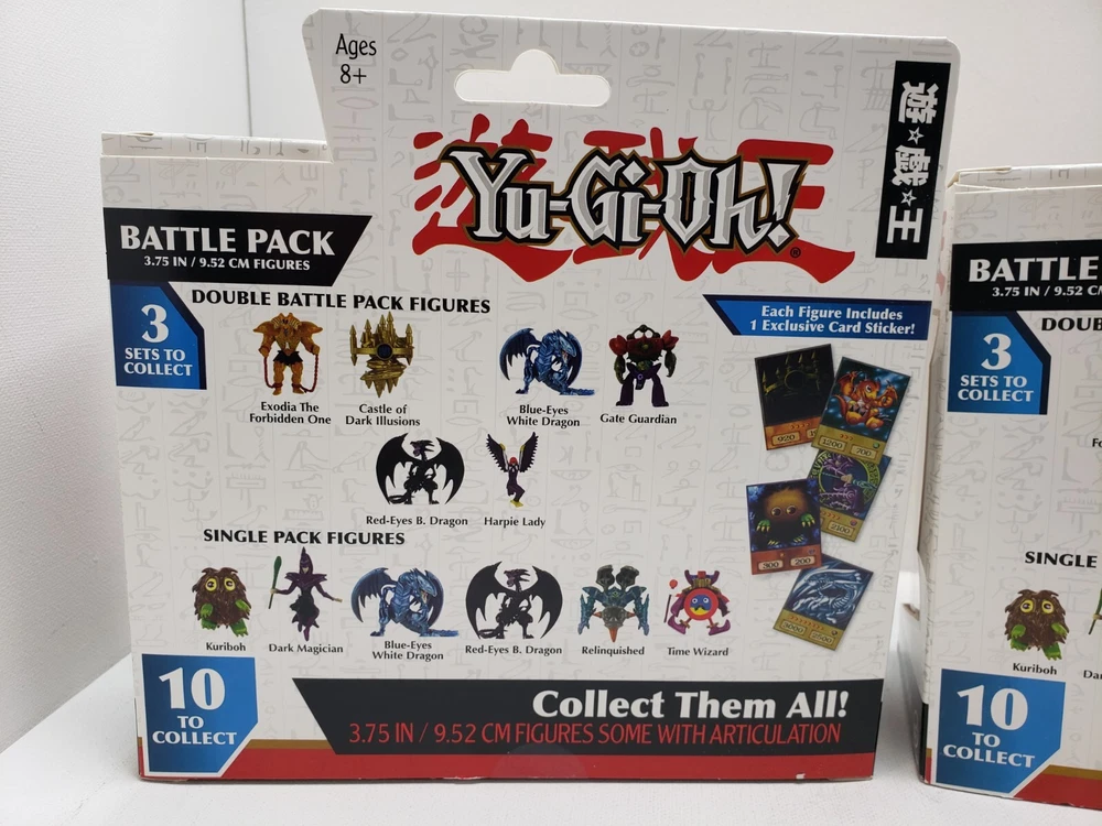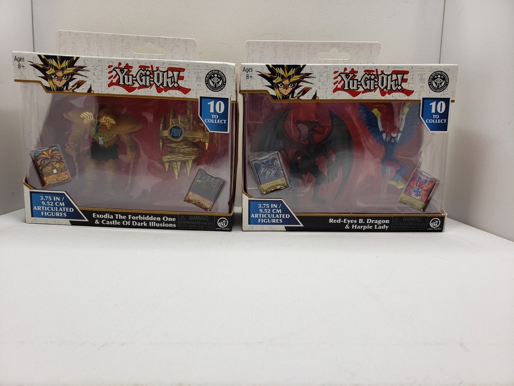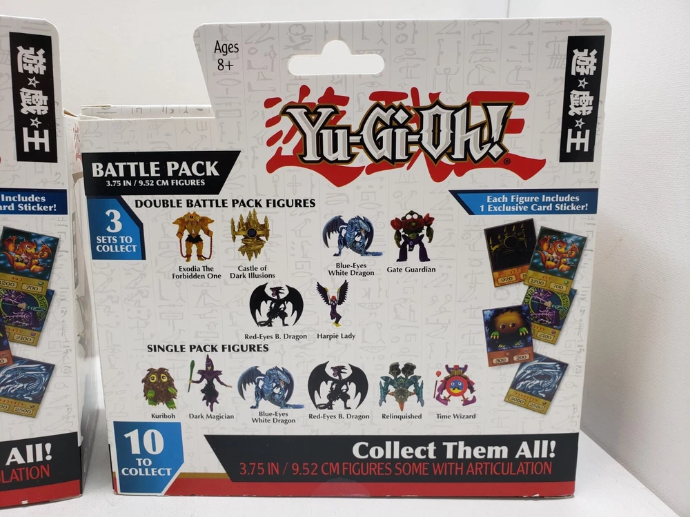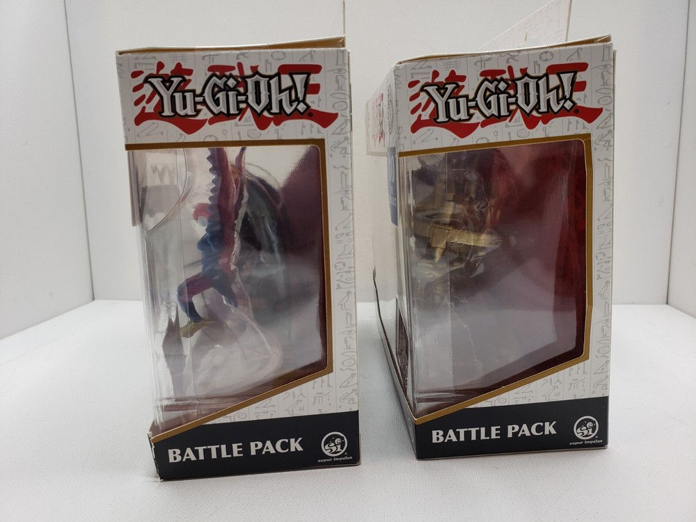This NEW SEALED lot features two battle packs from the popular franchise Yu-Gi-Oh! The set includes Exodia The Forbidden One & Castle of Dark Illusions and Red-Eyes B Dragon & Harpie Lady characters, both in gold, black and blue color. The action figures are 3.75" tall and produced by Super Impulse Ltd and are in their original form. Each Battle Pack contains 2 figures and 2 Card Stickers. The sets are perfect for fans of the Yu-Gi-Oh! TV show and movie. It is recommended for children aged 8+ years old who are looking for a new addition to their toy collection. Still in OVERALL GREAT condition and could be display pieces as well. There is some minor box damage on each box and see last 2 photos Please see ALL photos for the condition as they are part of the description of the item being sold Items come from a smoke free and pet free home Please contact me if you have any questions Items will ship after the payment is received Positive Feedback from Buyer will be Reciprocated Thank you