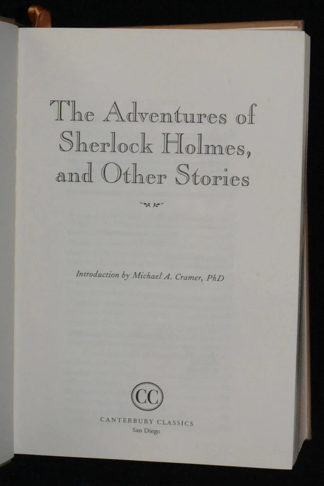NEW RETURN OF Sherlock Holmes & Stories by Conan Doyle Leather Bound Hardcover Product details There is one literary detective who stands above all others, whose powers of deduction are known the world over, whose influence can still be felt in today's most modern whodunits. Who is it, you ask? Why, it's elementary! Sherlock Holmes, the famous gumshoe of 221B Baker Street. And Sir Arthur Conan Doyle--the man who made him famous in such tales as "The Hound of the Baskervilles" and "A Study in Scarlet"--changed the world of mysteries, inspiring legions of devoted fans. Whether you're a devotee or you've yet to be awed by Holmes's powers of deduction, you'll love this Canterbury Classics edition of Sir Arthur Conan Doyle's famous works, including "The Adventures of Sherlock Holmes," "The Sign of Four," "The Valley of Fear," "The Memoirs of Sherlock Holmes," "The Return of Sherlock Holmes," and "The Casebook of Sherlock Holmes." The perfect book to complete any bookshelf, "The Adventures of Sherlock Holmes and Other Stories" features an eye-catching leather-bound cover with gold foil stamping, as well as fine ivory paper with gilded edges. You'll be spellbound by Conan Doyle's descriptive prose, and then delight in displaying this beautiful book in your home. No home library is complete without the classics! The Adventures of Sherlock Holmes and Other Stories brings together the essential works from Arthur Conan Doyle in an elegant, leather-bound, omnibus edition--a keepsake to be read and treasured. There is one literary detective who stands above all others, whose powers of deduction are known the world over, whose influence can still be felt in today's most modern whodunits. Who is it, you ask? Why, it's elementary! Sherlock Holmes, the famous gumshoe of 221B Baker Street. And Sir Arthur Conan Doyle--the man who made him famous in such tales as The Hound of the Baskervilles and A Study in Scarlet --changed the world of mysteries, inspiring legions of devoted fans. Whether you're a devotee or you've yet to be awed by Holmes's powers of deduction, you'll love this Canterbury Classics edition of Sir Arthur Conan Doyle's famous works, including The Adventures of Sherlock Holmes , The Sign of Four , The Valley of Fear , The Memoirs of Sherlock Holmes , The Return of Sherlock Holmes , and The Casebook of Sherlock Holmes . The perfect book to complete any bookshelf, The Adventures of Sherlock Holmes and Other Stories features an eye-catching leather-bound cover with gold foil stamping, as well as fine ivory paper with gilded edges. You'll be spellbound by Conan Doyle's descriptive prose, and then delight in displaying this beautiful book in your home. A classic keepsake for fans of detective novels, as well as all great literature, The Adventures of Sherlock Holmes and Other Stories is the perfect addition to any library. Specifications Language English Series Title Leather-Bound Classics Publisher Canterbury Classics Book Format Hardcover Original Languages English Number of Pages 1052 Author Sir Arthur Conan Doyle Title The Adventures of Sherlock Holmes, and Other Stories ISBN-13 9781607102113 Publication Date November, 2011 Assembled Product Dimensions (L x W x H) 9.20 x 6.40 x 2.20 Inches ISBN-10 1607102110