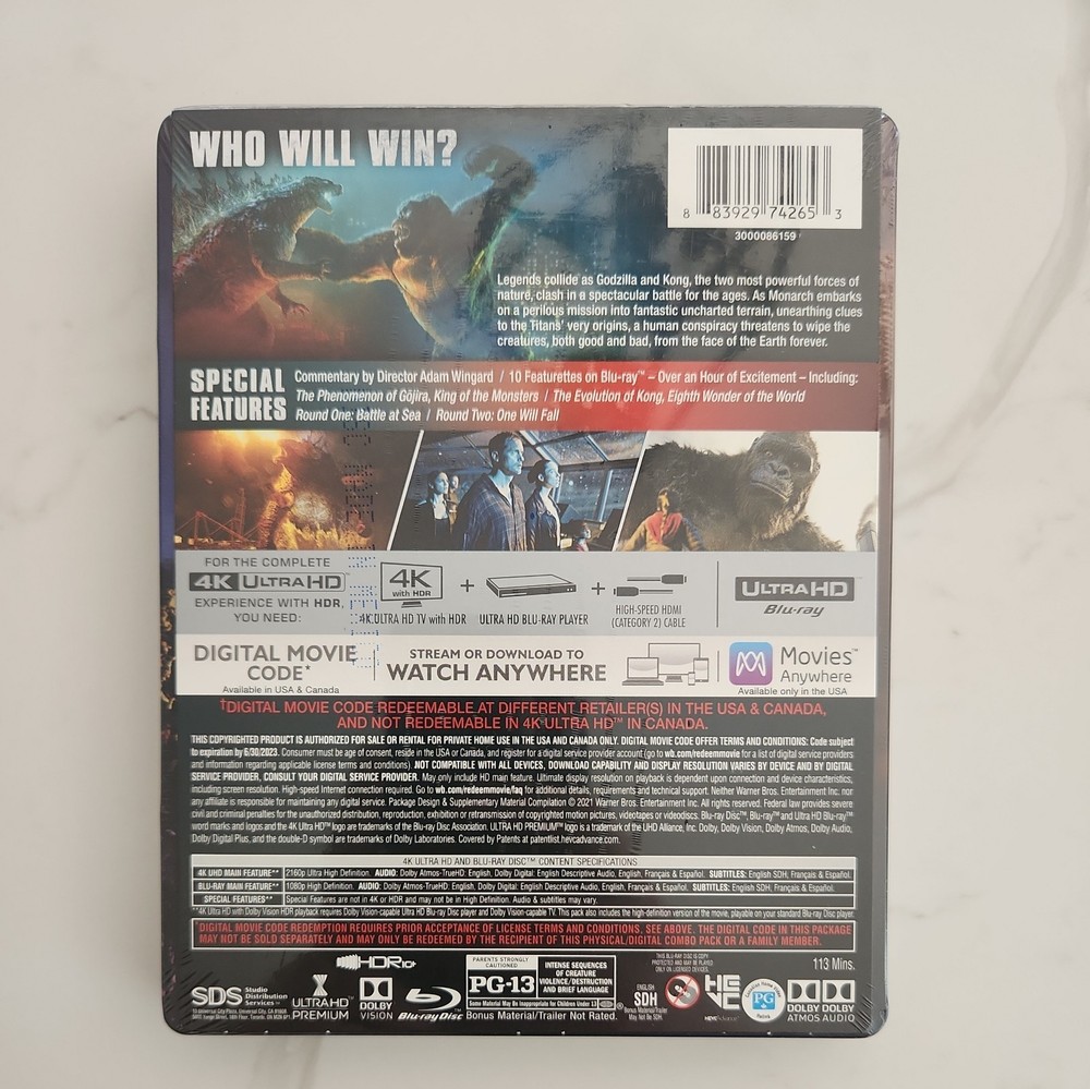 Godzilla vs Kong 4K Steelbook see pictures brand new sealed best buy exclusive Steelbook ships well protected in a box...