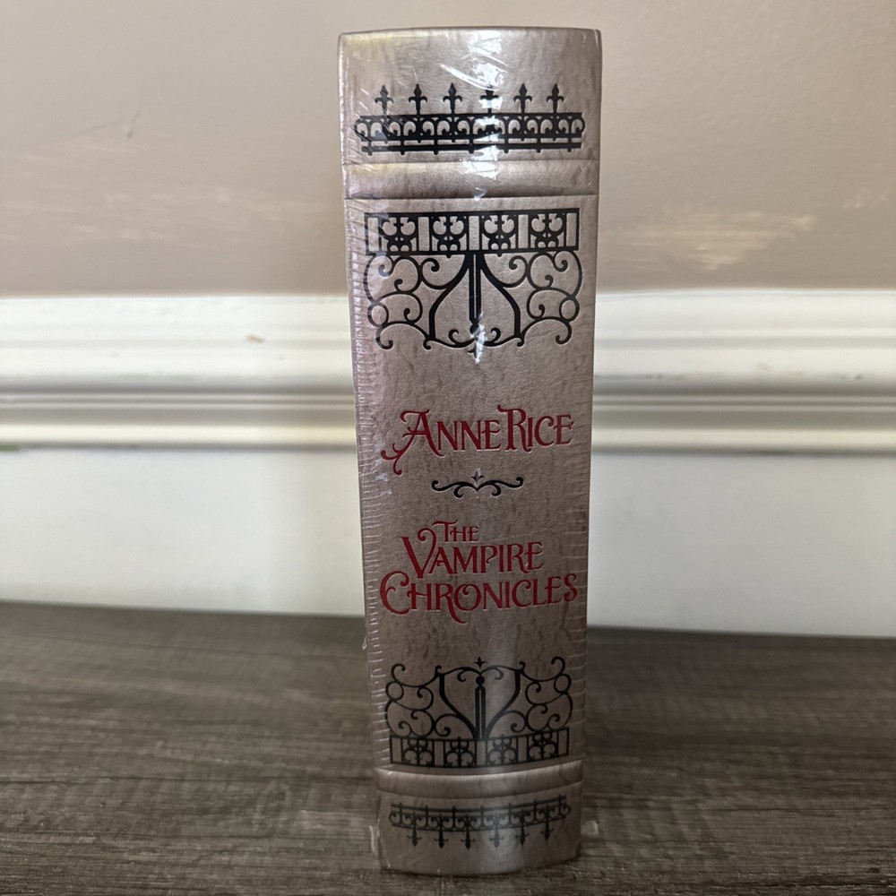 The product is a new sealed leather-bound edition of "The Vampire Chronicles" by Anne Rice, as well as an interview with the vampire. This horror genre book is published by Knopf and is in English. It is not personalized, signed, or inscribed, and is not considered a vintage item. This collectible edition would be a great addition to any fan of Anne Rice's vampire series.