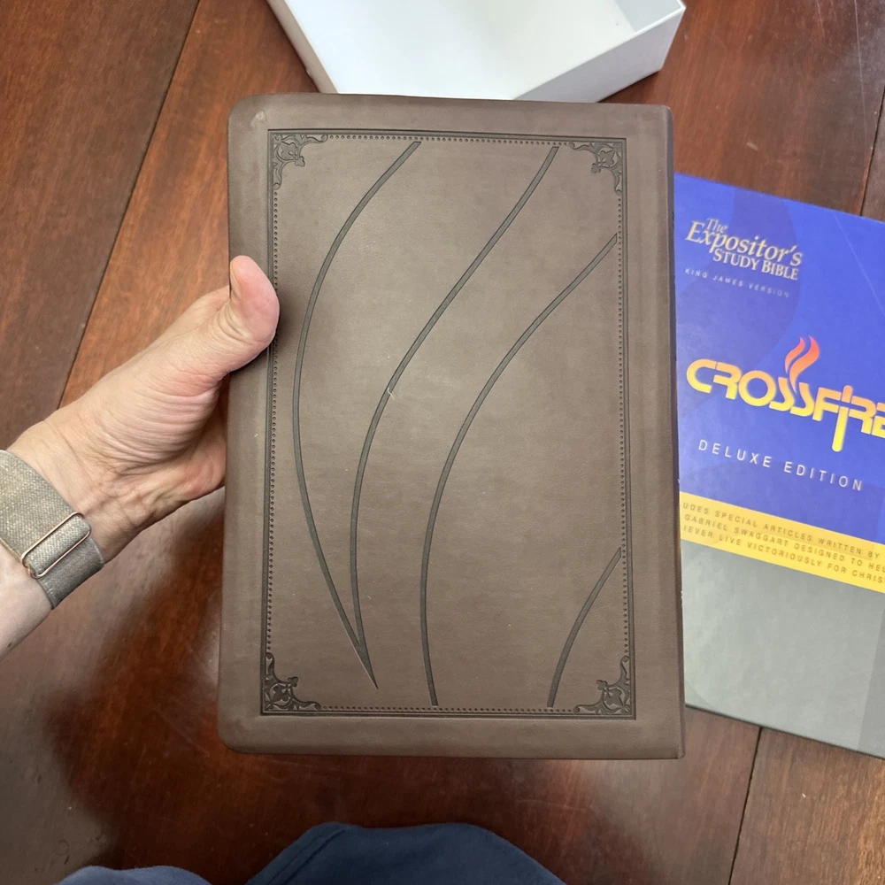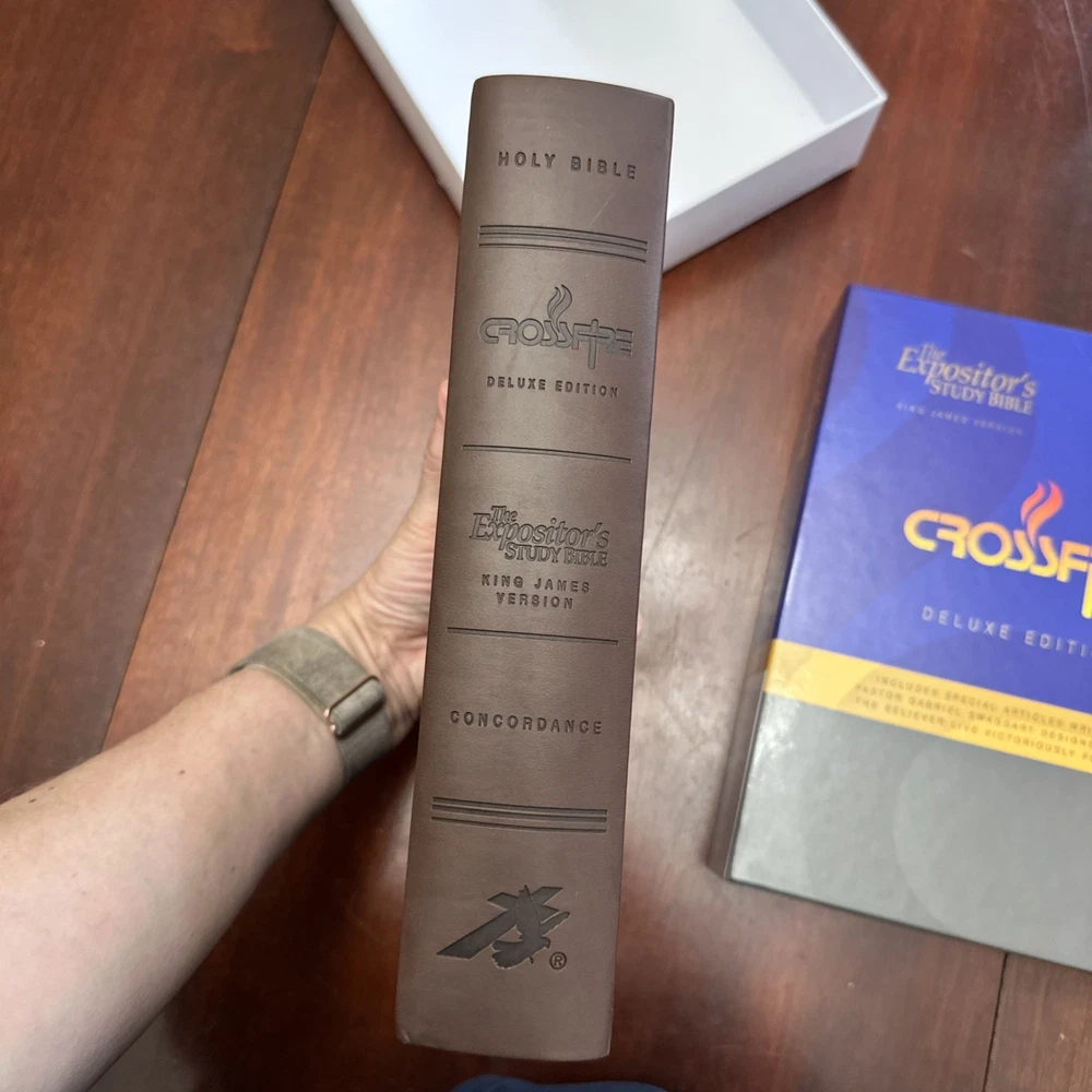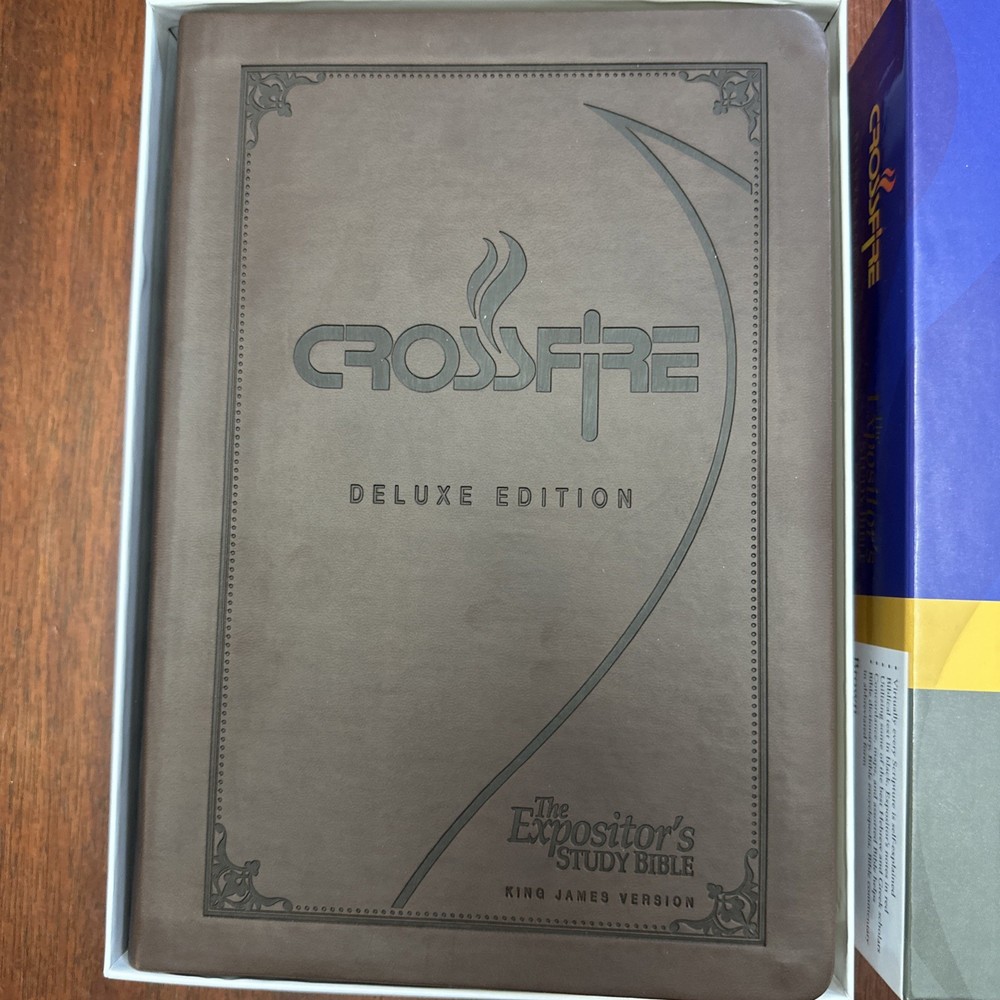 The Expositor's Study Bible Crossfire Deluxe - KJV-SIGNED by Gabriel Swaggart is a highly collectible and valuable edition of the King James Version Bible. This deluxe leather-bound Bible, published by Jimmy Swaggart Ministries in 2013, is signed by Gabriel Swaggart himself. With its personalized inscription and sturdy brown leather format, this Bible is a unique and treasured item for any Christian reader or collector. Featuring a nonfiction narrative and focusing on topics such as Christian history, Christianity, and Jesus Christ, this Bible is a must-have for those seeking a deeper understanding of the faith.