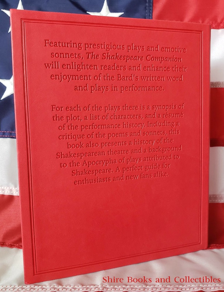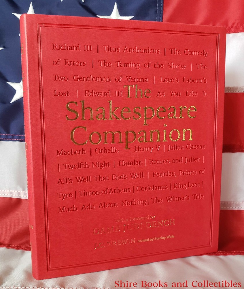 With a foreword by Dame Judi Dench J.C. Trewin revised by Stanley Wells The Shakespeare Companion Special Faux Leather Softcover Gift Edition BRAND NEW! 100% Positive Feedback Seller - Bid without worries!! Item Description This book is brand new , never read or used in any way, perfect condition. Beautiful lettering & art design on the cover and spine Faux Leather bound softcover / flexicover Featuring prestigious plays and emotive sonnets, The Shakespeare Companion will enlighten readers and enhance their enjoyment of the Bard's written word and plays in performance. For each of the plays there is a synopsis of the plot, a list of characters, and a resume of the performance history. Including a critique of the poems and sonnets, this book also presents a history of the Shakespearean theater and a background to the Apocrypha of plays attributed to Shakespeare. A perfect guide for enthusiasts and new fans alike. Shipping FREE Shipping within the continental USA will be via USPS Media Mail. Priority Mail is available for an extra $10 shipping charge. If you are from an American location that is not part of the continental USA , you will be required to pay for Priority Mail. I have set these locations as Exclusions, but I will be happy to remove the exclusions upon request and agreement to pay for the $10 for Priority Shipping. International Shipping will be via eBay Global Shipping Program. I use Media Mail to send to the Global Shipping center in Kentucky, however, if you wish for it to arrive at the center more quickly, you can add $10 to have it shipped there Priority. All of my books are shipped in sturdy, safe and secure boxes. Return Policy: Returned or exchanged items must be in original condition to qualify for a refund, and must be returned within 30 days from the purchase date. Customers are responsible for all return or exchange shipping charges. Once the returned item is received back to me and I can verify condition, I will process the Refund. Track Page Views With Auctiva's FREE Counter