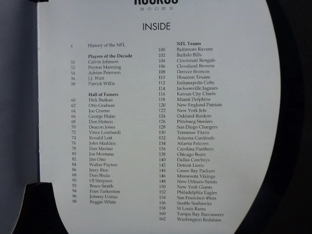 NFL FOOTBALL BOOK EXCELLENT CONDITION, LOOKS UNUSED Approximately 12” x 7” I’ve tried to show the pros and cons in the above photos, which are of the actual item you are bidding on. I typically purchase my items at high end estate sales in Southern California. This, along with numerous other finds, is now up for auction. Please be aware that each of my items is also available through local sales or other venues. As such I may end a listing early if the item is no longer available. I am not an expert on this item. I do my very best to determine particulars of the items I offer, and describe them accurately. That, the pictures, any questions you send me, and your expertise must guide you in your estimate of value. I also have many other items that I will be listing. So please keep checking my other eBay listings, where I have listed at various times: Bombay Company Blue & White China Vintage Furniture Original Oil & Watercolor Paintings Various Collectibles I’m always looking for interesting and scarce objects so I can pass them along. New items appear continuously that I will be listing in the future. Typically, I only ship within the United States. If eBay’s international shipping service accepts an item of mine, I will consider shipping to you anywhere in the world where they will deliver. As with any of my listings, local pickup is free. Thanks for looking!