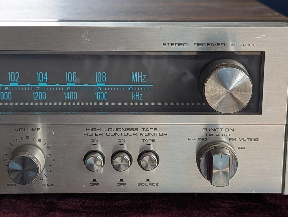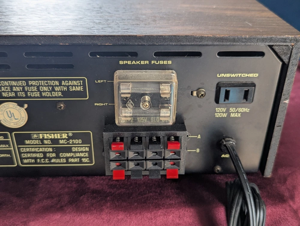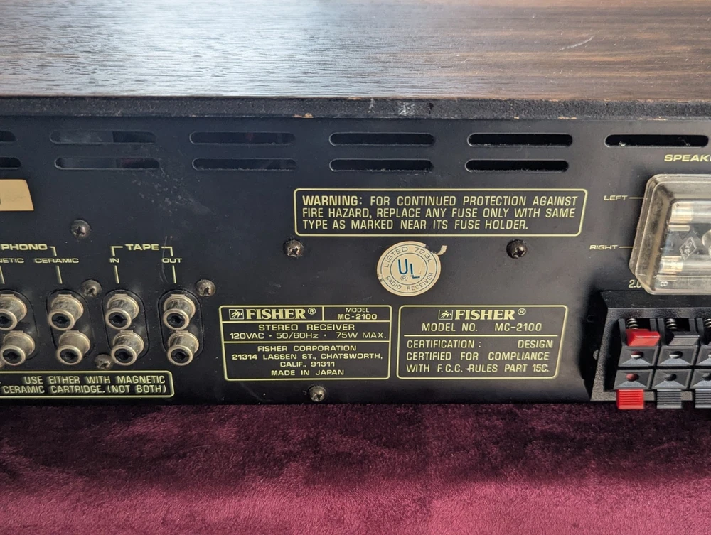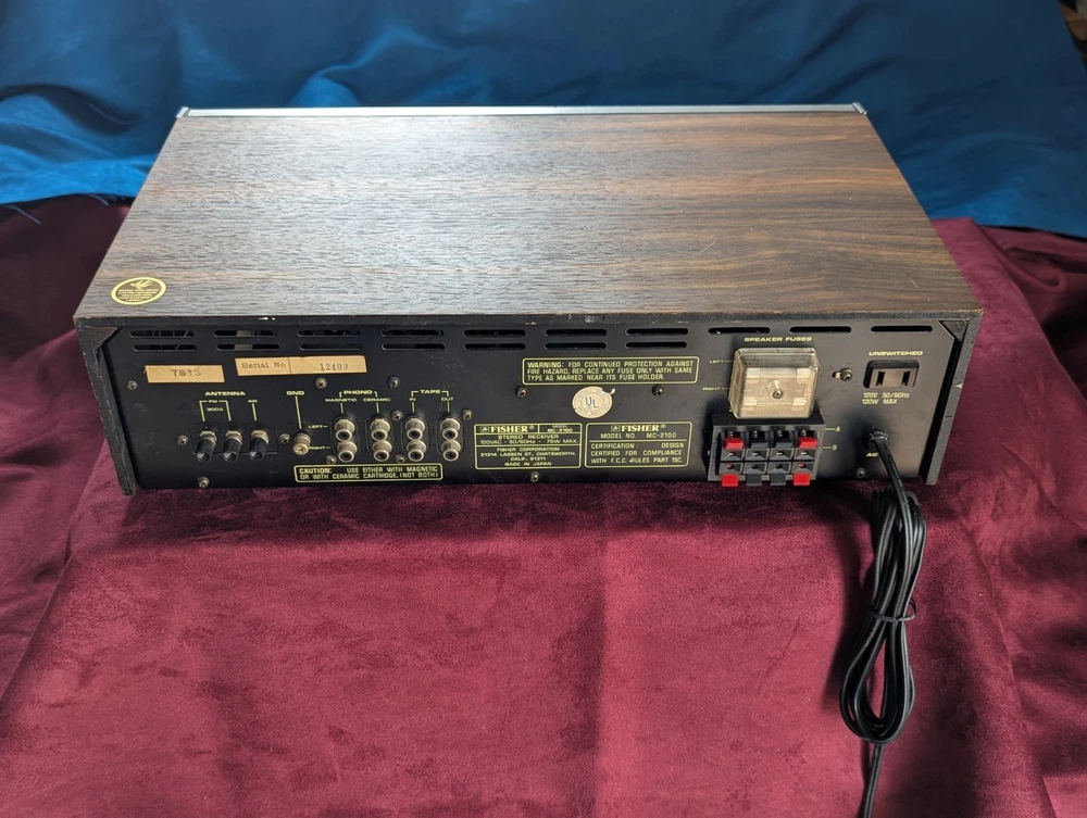 NICE Vintage Fisher MC-2100 Stereo Receiver 12W/channel JAPAN 1978 **TESTED** Nice cosmetic condition with light scuffing, tiny paint specks and dings for the age. All inputs and outputs have been tested and work. All lamps are functioning. The tuning indicator was stuck (a common issue on these) and has been repaired to proper function. The speaker terminal block on the back was replaced due to damage to the original and there are additional screw holes visible at the edges of the new block. See pictures and video! Original price in 1978 was $189, which translates into $965 in modern dollars. So for a "starter" receiver, it was hardly an inexpensive piece of Japanese-made gear. Vintage Item Disclaimer: This item has survived for decades and still works well. We cannot predict or guarantee how long this item will continue to work. Like most devices, it may require periodic service or maintenance to continue functioning. Note that many vintage items have a "vintage" odor. If you are sensitive to odors, please check the listing carefully or ask before buying. Please carefully review the pictures before asking questions. We're happy to answer questions, but please ask BEFORE making and offer/purchasing this item! Packing: This item will be carefully packaged in cushion materials and sent to arrive safe and sound. Shipping: We ship to CONFIRMED addresses in the US ONLY! Shipping Cost: We usually offer several shipping method choices for each item, so look to make sure you're choosing the best price/shipping time for your needs and location. The shipping amounts show are calculated by eBay. We don't control them, nor do we mark them up. If you receive a different amount during checkout than the estimate you received before, please contact us and we will investigate. Payment: ! Payment must be received within 3 days of sale to avoid a non-payment claim through eBay. Excluded buyers: We automatically prohibit buyers from purchasing if they have negative feedback or have a recent history of non-payment. Thank you for taking the time to view our listing! livcab