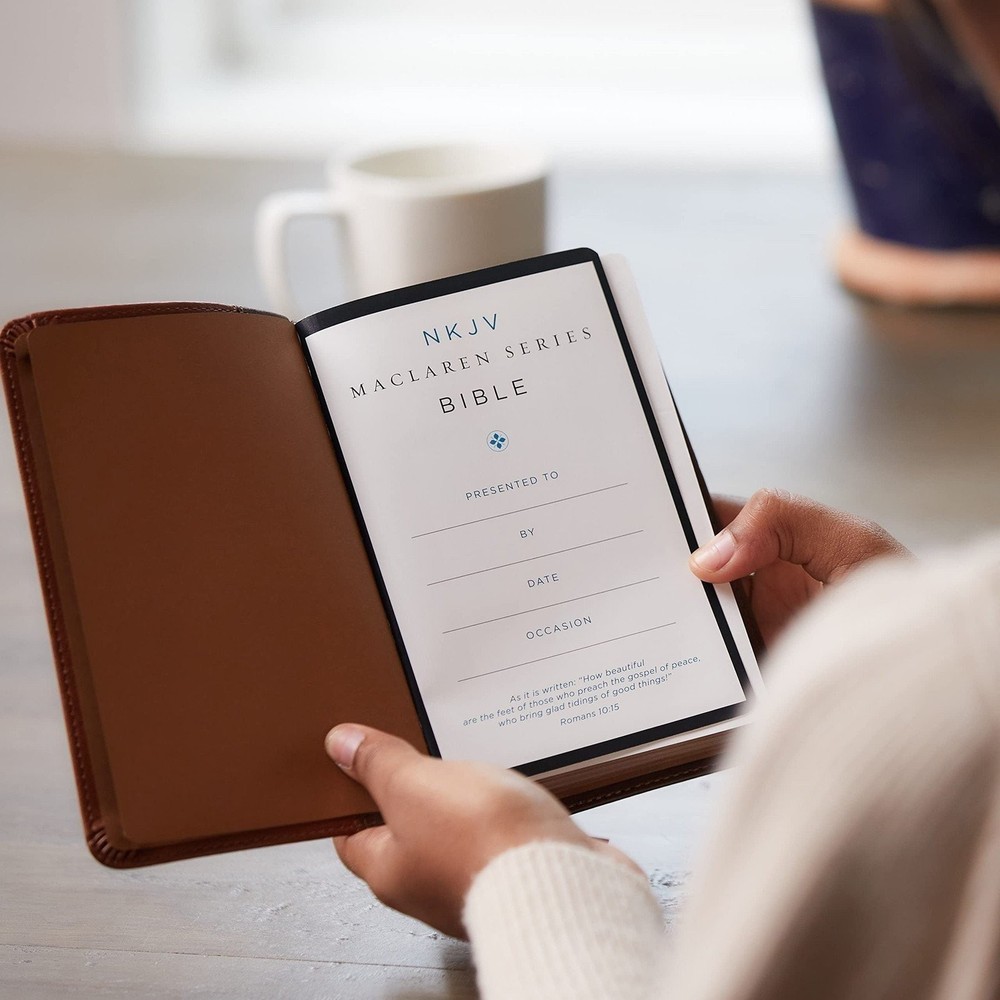 | Synopsis | The NKJV Compact Maclaren Series Bible is the perfect travel companion for wherever you are. Whether at home or on the go, this beautiful edition of the Bible will keep you engaged in God's Word. The portable edition is not only easy to carry but also easy to read, using two-color printing, paragraph style, and the NKJV Comfort Print., A small, hand-sized NKJV Bible designed with clear Scripture text and elegant materials to honor God's Word. The N KJV Compact Maclaren Series Bible is the perfect size to take with you wherever you go. Whether at home or on the go, this beautiful hand-sized edition of the Bible will keep you engaged in God's Word. Enjoy the New King James Version in a traditional Scripture design formatted to help you quickly navigate through the Bible. The blue contrasting color for headings and verse numbers stand out while Thomas Nelson's exclusive NKJV Comfort Print(R) on quality Bible paper provides a smooth, thoroughly enjoyable reading experience. Features include: Classic 2-column layout Two double-faced satin ribbons help keep track of where you were reading Blue highlighted headings and book titles add an elegant touch to the text Premium Bible paper in opaque white creates a high contrast with the black text, improving readability Line matched text for optimal clarity on the page Words of Christ in black for a reading experience that is easy on your eyes throughout Scripture Ultra-flexible sewn binding lays flat in your hand or on your desk Clear and readable 7-point NKJV Comfort Print About the Maclaren Series : Named for the noted Victorian-era preacher, Alexander Maclaren, this series of elegant Bibles feature regal blue highlights and verse numbers and clear, line-matched text., The NKJV Compact Maclaren Series Bible is the perfect size to take with you wherever you go. Whether at home or on the go, this beautiful edition of the Bible will keep you engaged in God's Word. Enjoy the New King James Version in a traditional Scripture design formatted to help you quickly navigate through the Bible. The blue contrasting color for headings and verse numbers stand out while Thomas Nelson's exclusive NKJV Comfort Print on quality Bible paper provides a smooth, thoroughly enjoyable reading experience. Features include: Classic 2-column paragraph-style format Exclusive NKJV Comfort Print typeset for smooth reading experience Two double-faced satin ribbons About the Maclaren Series: Named for the noted Victorian-era preacher, Alexander Maclaren, this series of elegant Bibles feature regal blue highlights and verse numbers, and clear, line-matched text., A small, hand-sized NKJV Bible designed with clear Scripture text and elegant materials to honor God's Word. The NKJV Compact Maclaren Series Bible is the perfect size to take with you wherever you go. Whether at home or on the go, this beautiful hand-sized edition of the Bible will keep you engaged in God's Word. Enjoy the New King James Version in a traditional Scripture design formatted to help you quickly navigate through the Bible. The blue contrasting color for headings and verse numbers stand out while Thomas Nelson's exclusive NKJV Comfort Print® on quality Bible paper provides a smooth, thoroughly enjoyable reading experience. Features include: Classic 2-column layout Two double-faced satin ribbons help keep track of where you were reading Blue highlighted headings and book titles add an elegant touch to the text Premium Bible paper in opaque white creates a high contrast with the black text, improving readability Line matched text for optimal clarity on the page Words of Christ in black for a reading experience that is easy on your eyes throughout Scripture Ultra-flexible sewn binding lays flat in your hand or on your desk Clear and readable 7-point NKJV Comfort Print About the Maclaren Series: Named for the noted Victorian-era preacher, Alexander Maclaren, this series of elegant Bibles feature regal blue highlights and verse numbers and clear, line-matched text. |