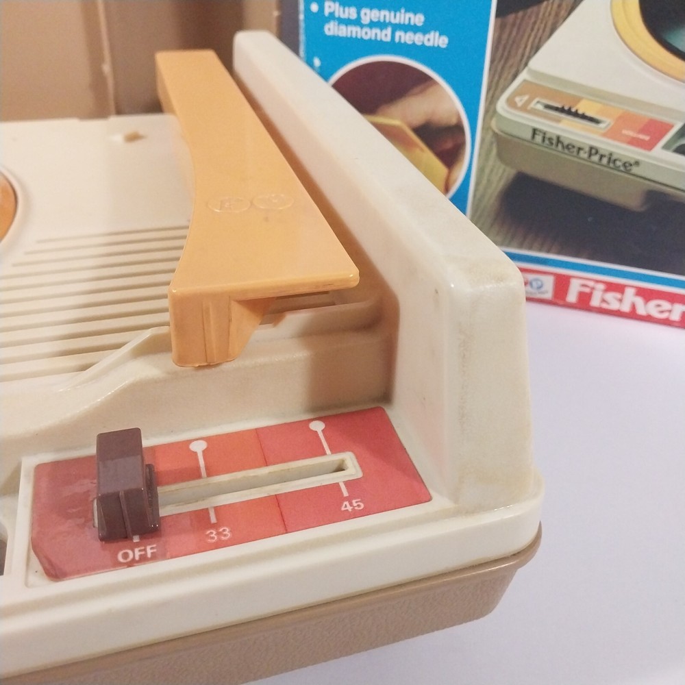 This vintage Fisher Price phonograph is a nostalgic gem! Even without sound, it’s in decent shape with its original box—perfect for collectors who love retro toys. The scuffs and wear add character, and it powers on, so it might just need a simple fix. Great display piece or restoration project! Shipping was quick, and the seller was responsive. Highly recommend for any FP enthusiast!