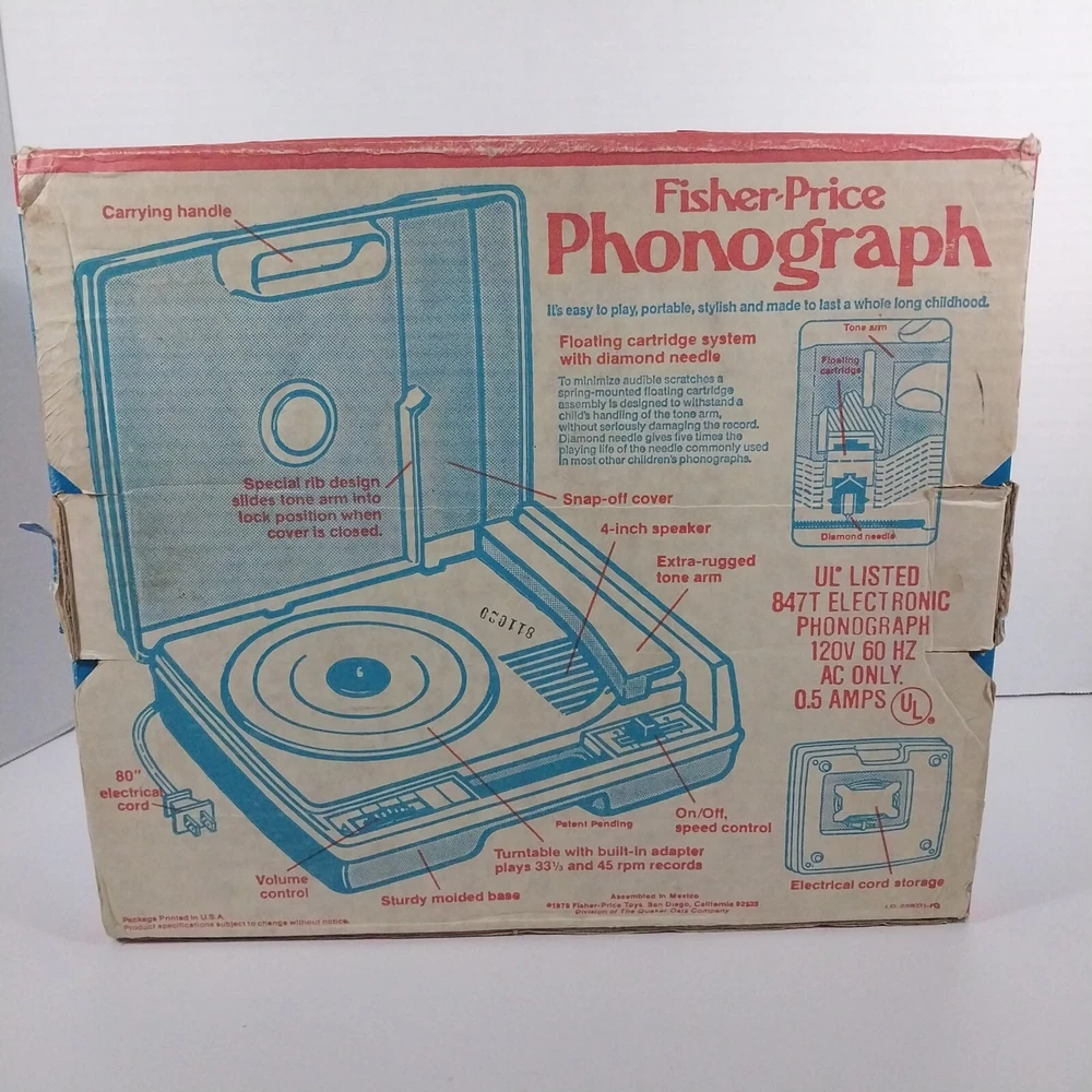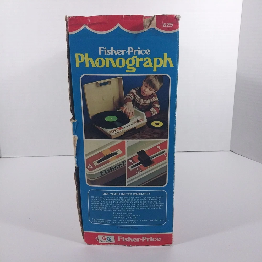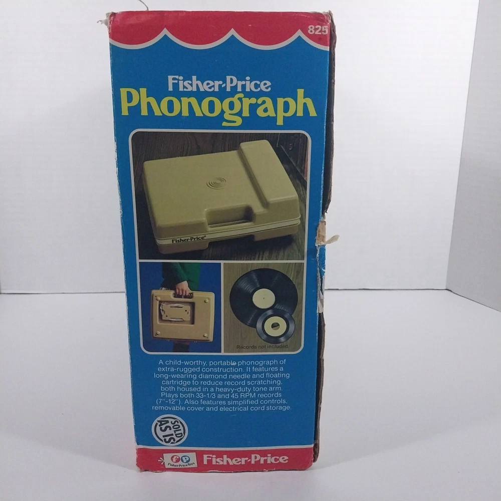 NO SOUND - Fisher Price Phonograph 1978 #825 w/ Original Box Product Description: Pre-owned item - Needs repaired. POWERS ON BUT NO SOUND! Heavy scuffing and scratches from use. Some discoloration visible. Box shows heavy wear. Item is sold as pictured - See photo for condition details and anything that may be included. ✧ Please contact us for any questions you may have! ✧ Shipping Information Most orders placed are processed within 2 business days. Shipping is determined on a per item basis, please check the above shipping information for cost. We meticulously weigh and measure each item for the best rate for our customers. Our shipping is calculated off of measurements and distance from our location. Due to this we do not negotiate shipping. For international shipping - We use eBay Global Shipping and rates are calculated based on your address. Please note there are additional taxes and duties charged by your country’s customs, those charges are not collected by us. Return Policy A purchased item is eligible for a return for up to 30 days from the date of delivery and it should be returned in the same condition as received. Additional terms: Customers are held responsible for safe return of the item, which includes shipping.