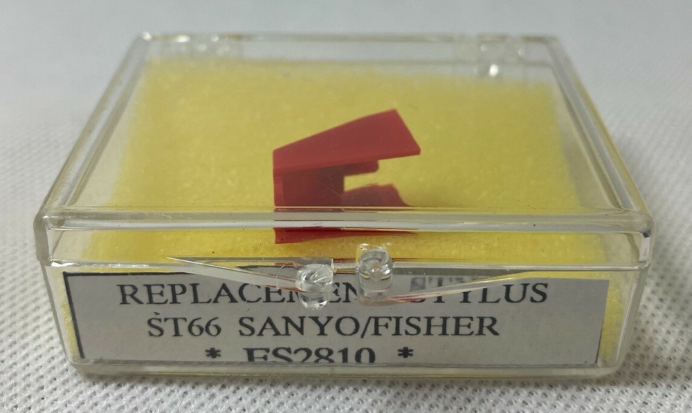 New old stock replacement stylus manufactured by Diamond. Model ES2810 is made to fit Sanyo/Fisher ST-66 turntables.