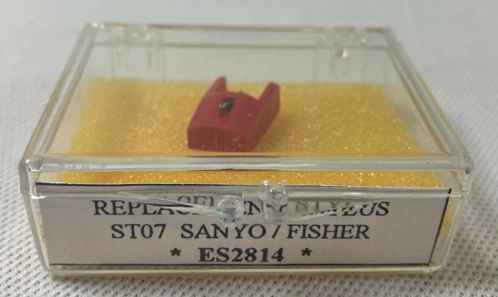 New old stock replacement stylus manufactured by Diamond. Model ES2814 is made to fit Sanyo/Fisher ST-07 turntables.