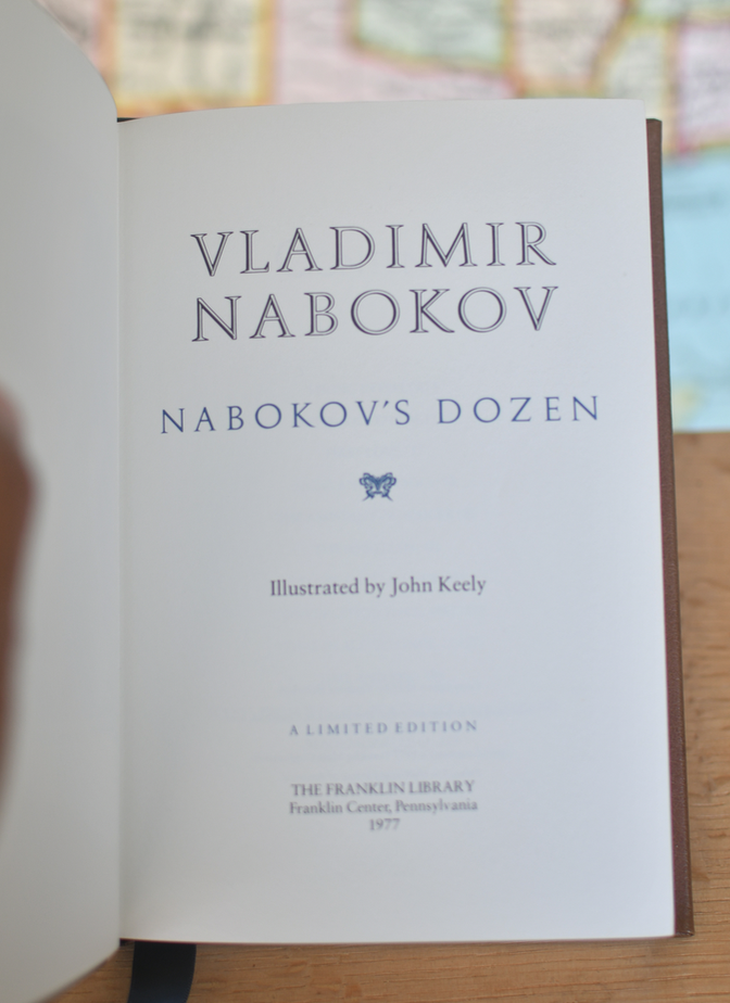 Nabokov’s Dozen by Vladimir Nabokov Illustrated by: John Keely Hardcover: 270 pages Publisher: 1977 The Franklin Library Language: English Note: Beautiful Unread copy.