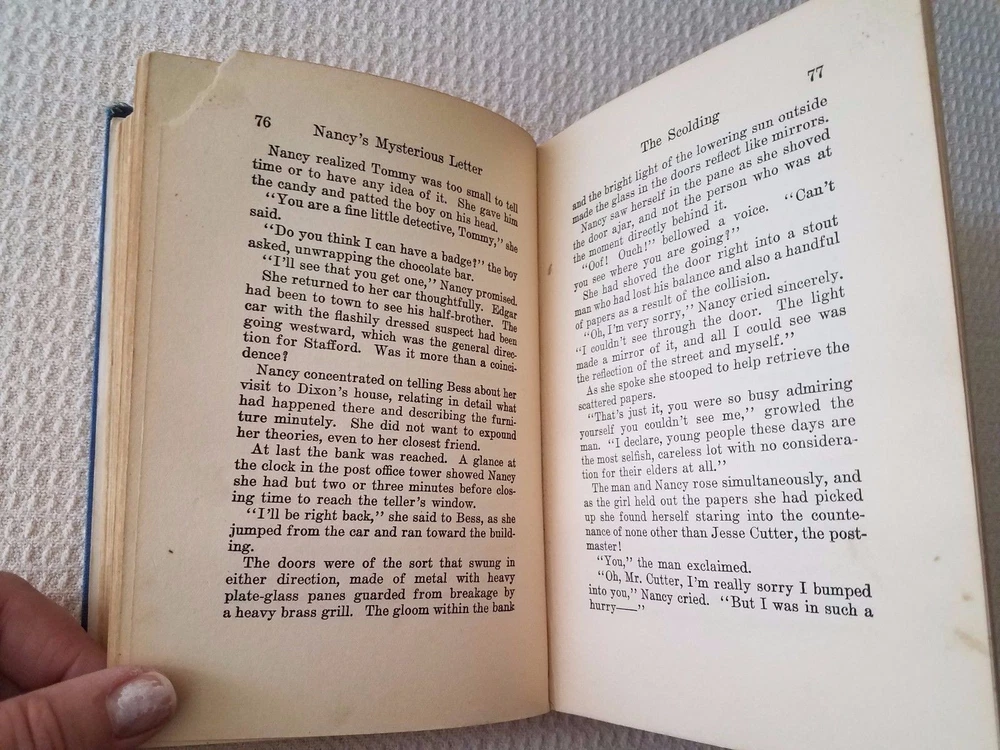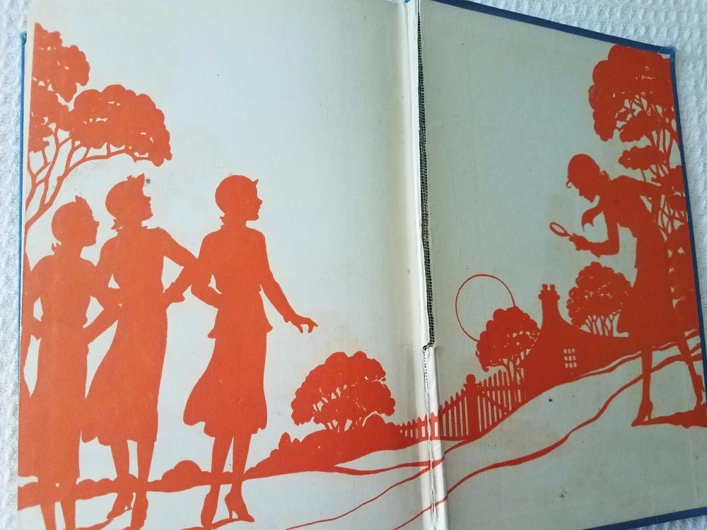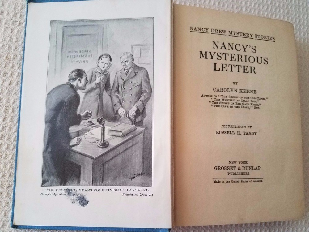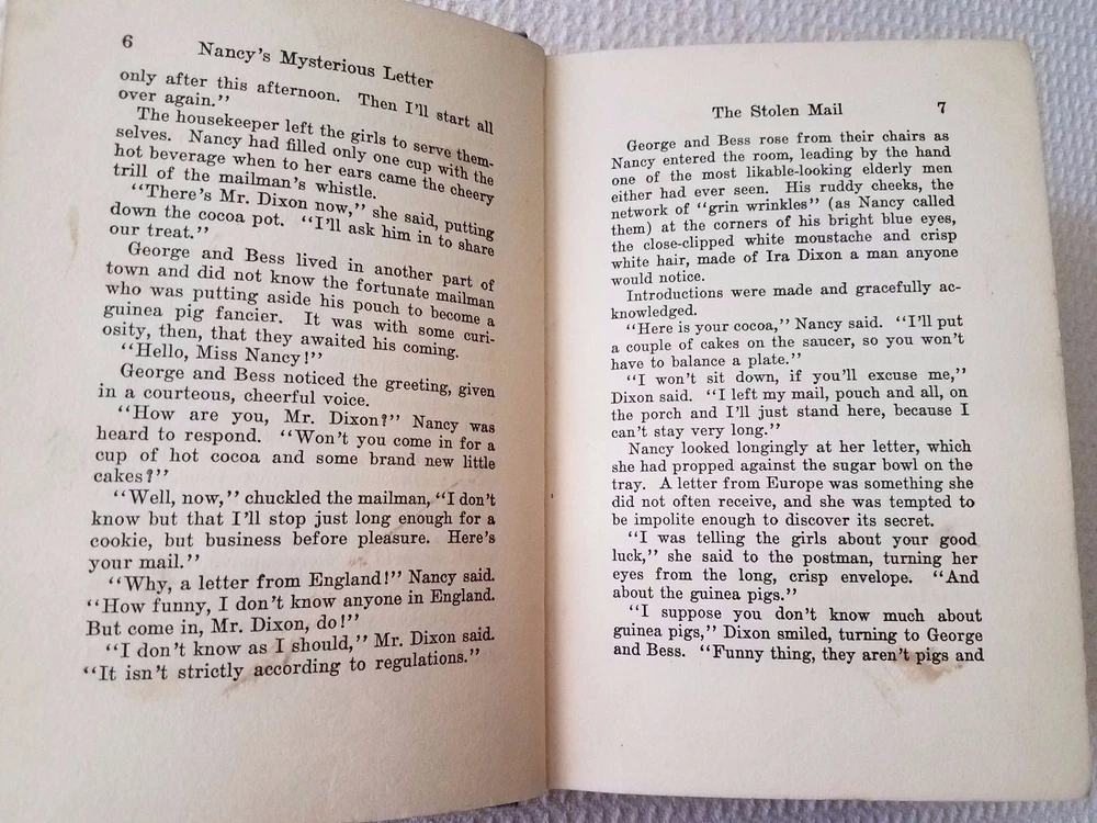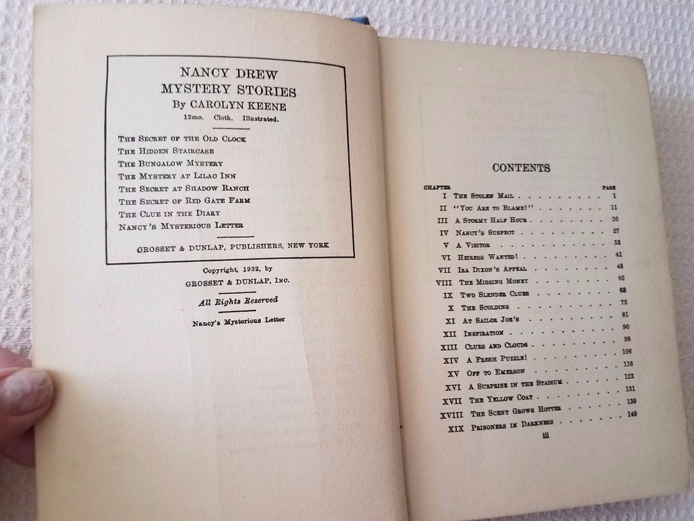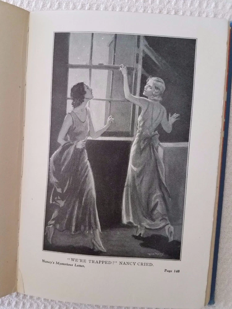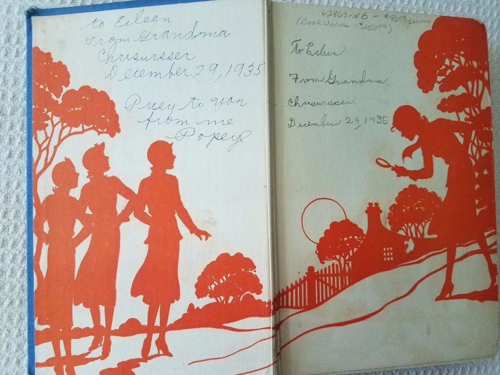 All glossy internals firmly attached in a strong binding. A few pages have torn off corners and several pages have smudges. Please see photos. This is an early reprint as the former owner dated the book 1935. Also there are advertisements in the back of the book with The Password to Larkspur Lane the last entry. The back inside page has a tear showing the binding. Several pages have rust spots which don't cover any words. There are worn spots on the cover and spine especially the edges and the former owner wrote on the flyleaf. Please see photos. But binding is strong and covers and still bright and decent.